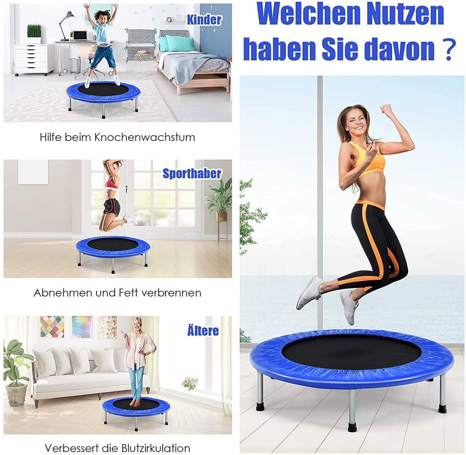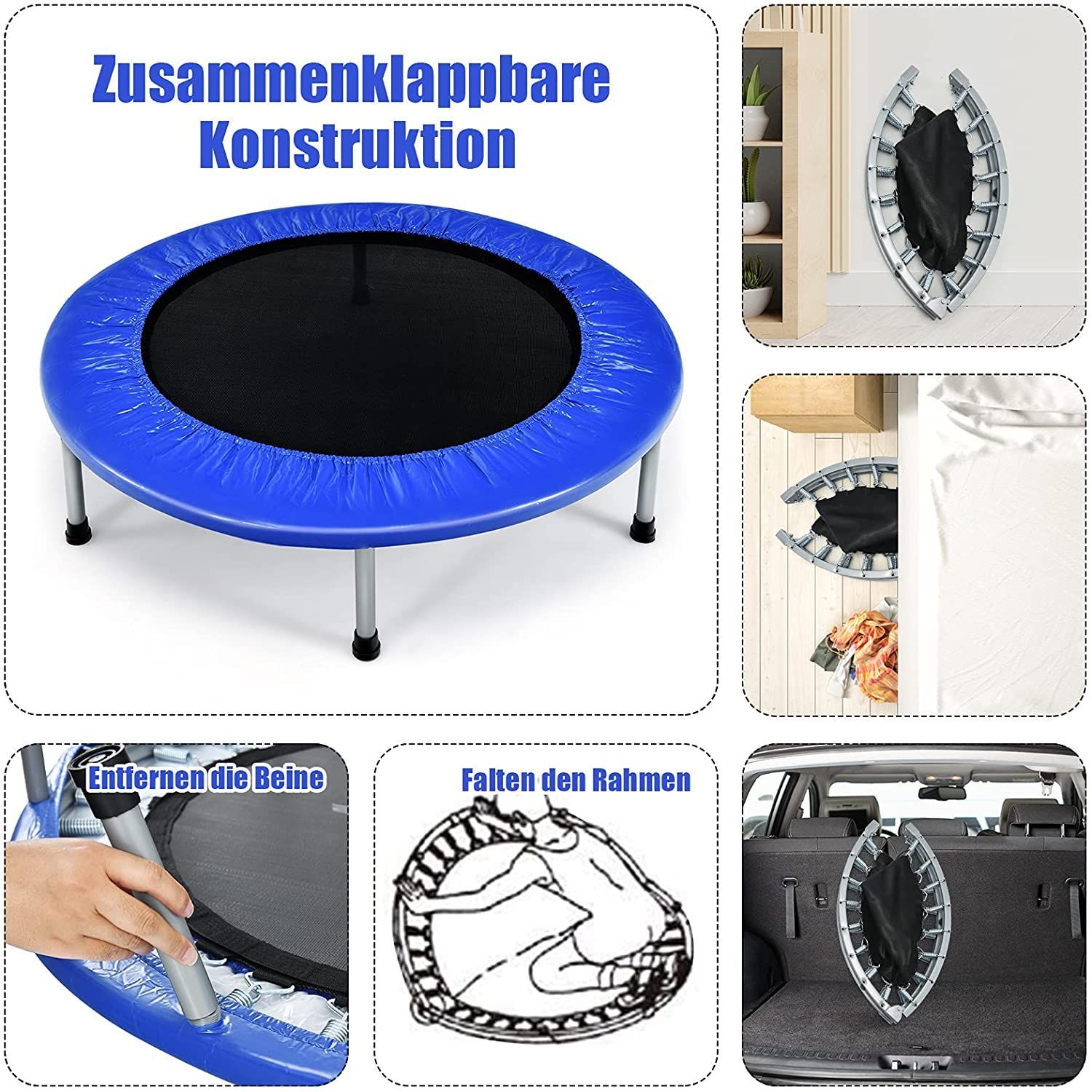 97cm Mini Trampolin, Fitness Trampolin faltbar, Kindertrampolin bis 150kg belastbar