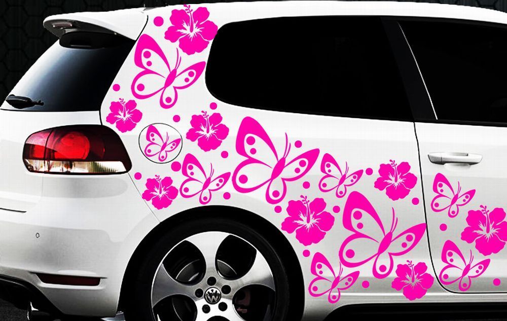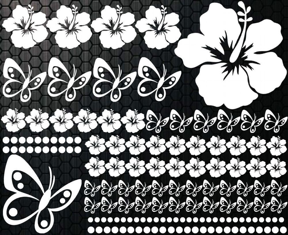 98 pezzi Adesivi Auto Fiori Di Ibisco Farfalle HAWAII Adesivo MURALE xlxx