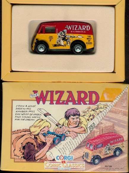 98758- The Wizard - Morris Van Sondermodell aus der Corgi Comic Classie Serie. Modell im Maßstab 1:43(Euro), originalverpackt, auf der Verpackung war mal ein Aufkleber (Preisschild). Das Modell kam 1991 heraus.