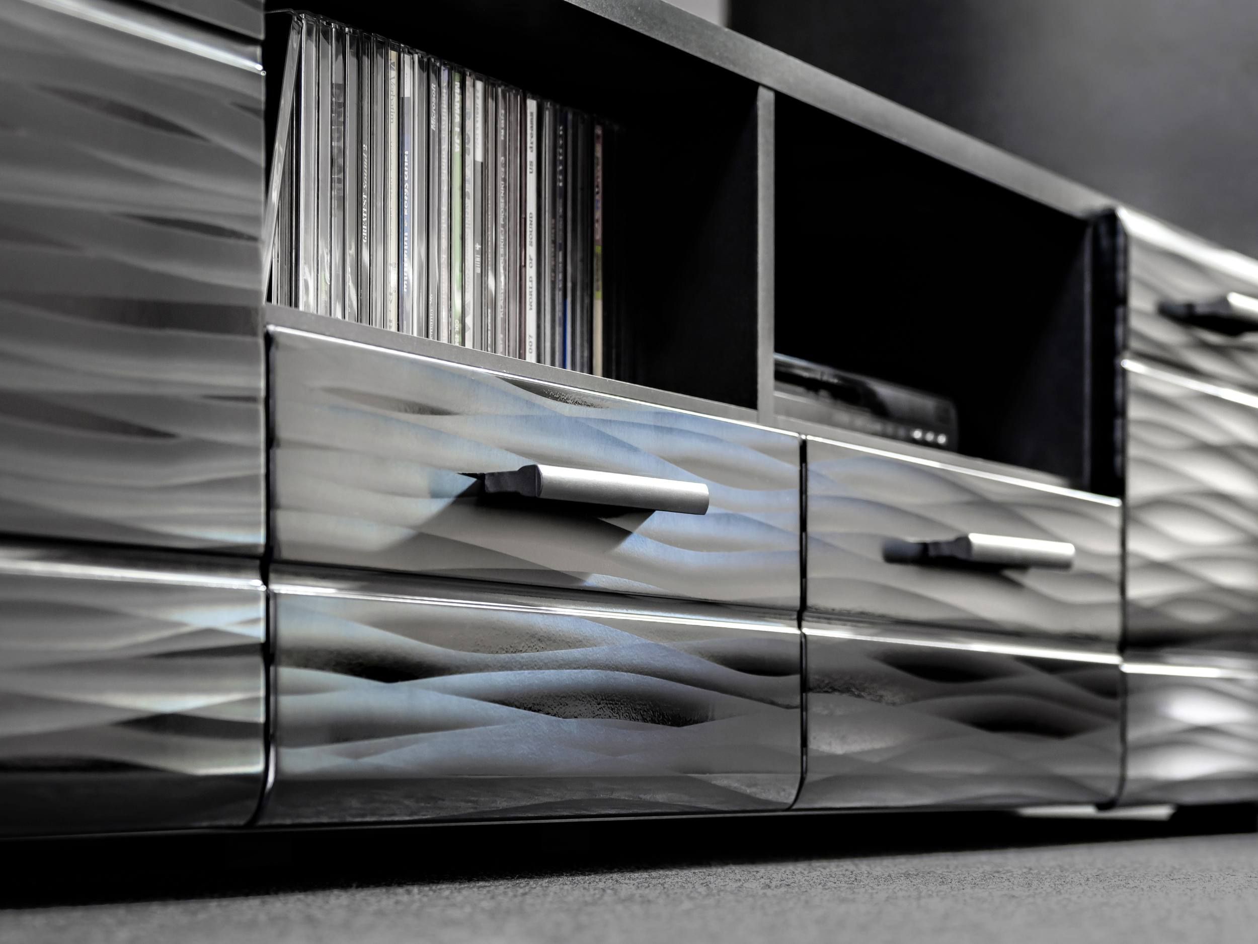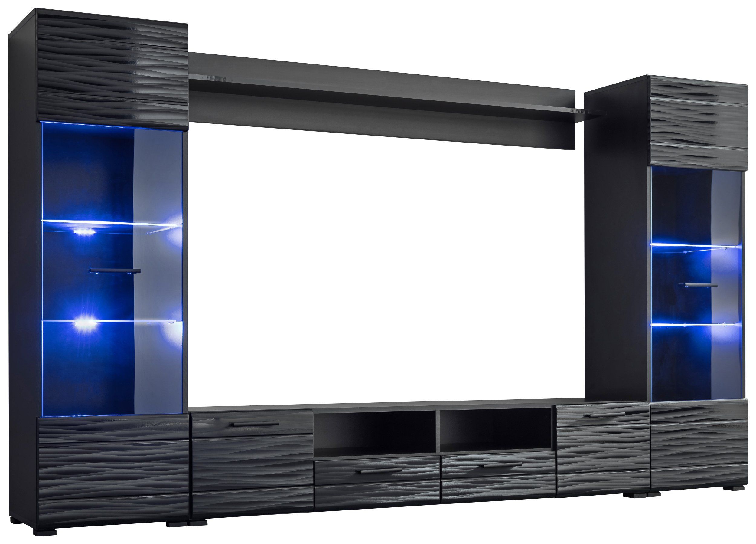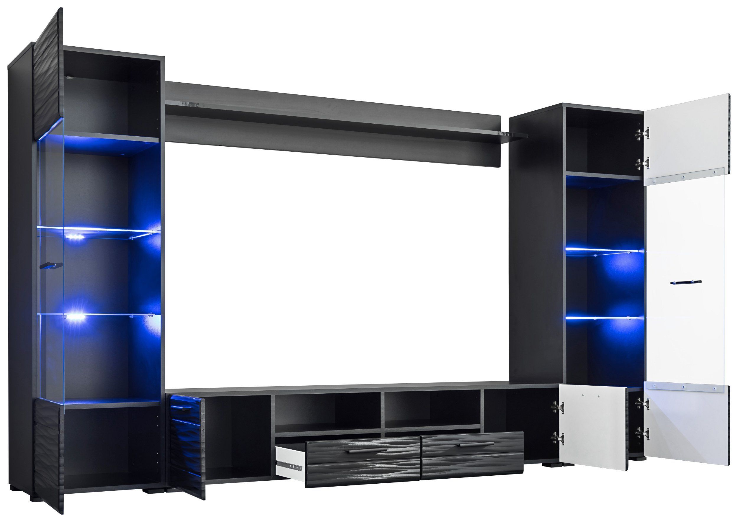 99rooms Delme Wohnwand Schwarz | Graphit Hochglanz