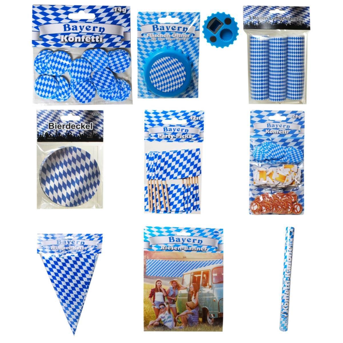 9er Partyset - Bayern Oktoberfest Wimpel, Biedeckel, Deko uvm