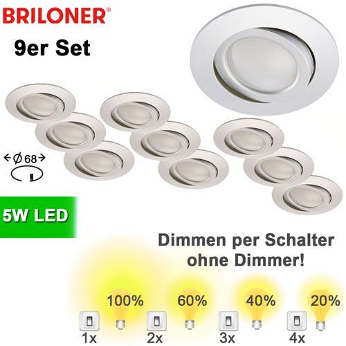 Briloner 9x LED Einbauspot dimmbar per Schalter schwenkbar Alu 68mm