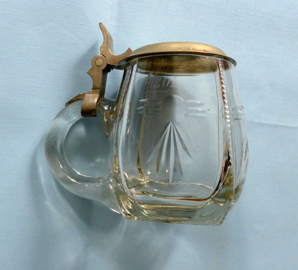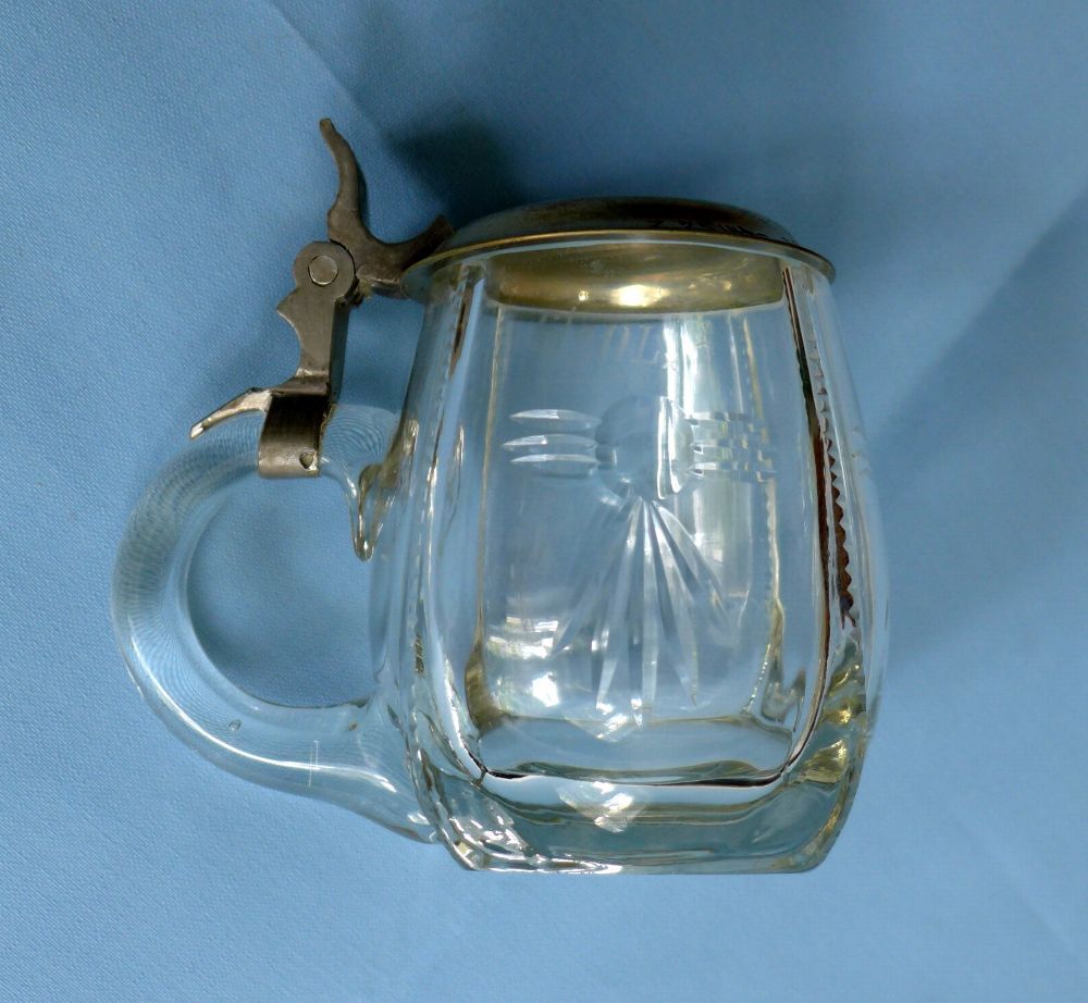 gebrauchter Zustand , leichte Gebrauchs- und Lagerspuren , Krug ohne Risse , nur minimalste Randchips , Abzeichen : Durchm. ca. 40 mm , Rückseite : Eigentum des A.R.K.B. Solidarität Ges. Gesch. , Krug : Höhe ca. 11 cm ohne Daumendrücker gemessen , Deckel gemarkt original Wellner , Z. 25 jähr. Jubil.