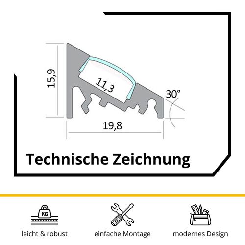 A20 LED Aluprofil Weiss Eckprofil 30°