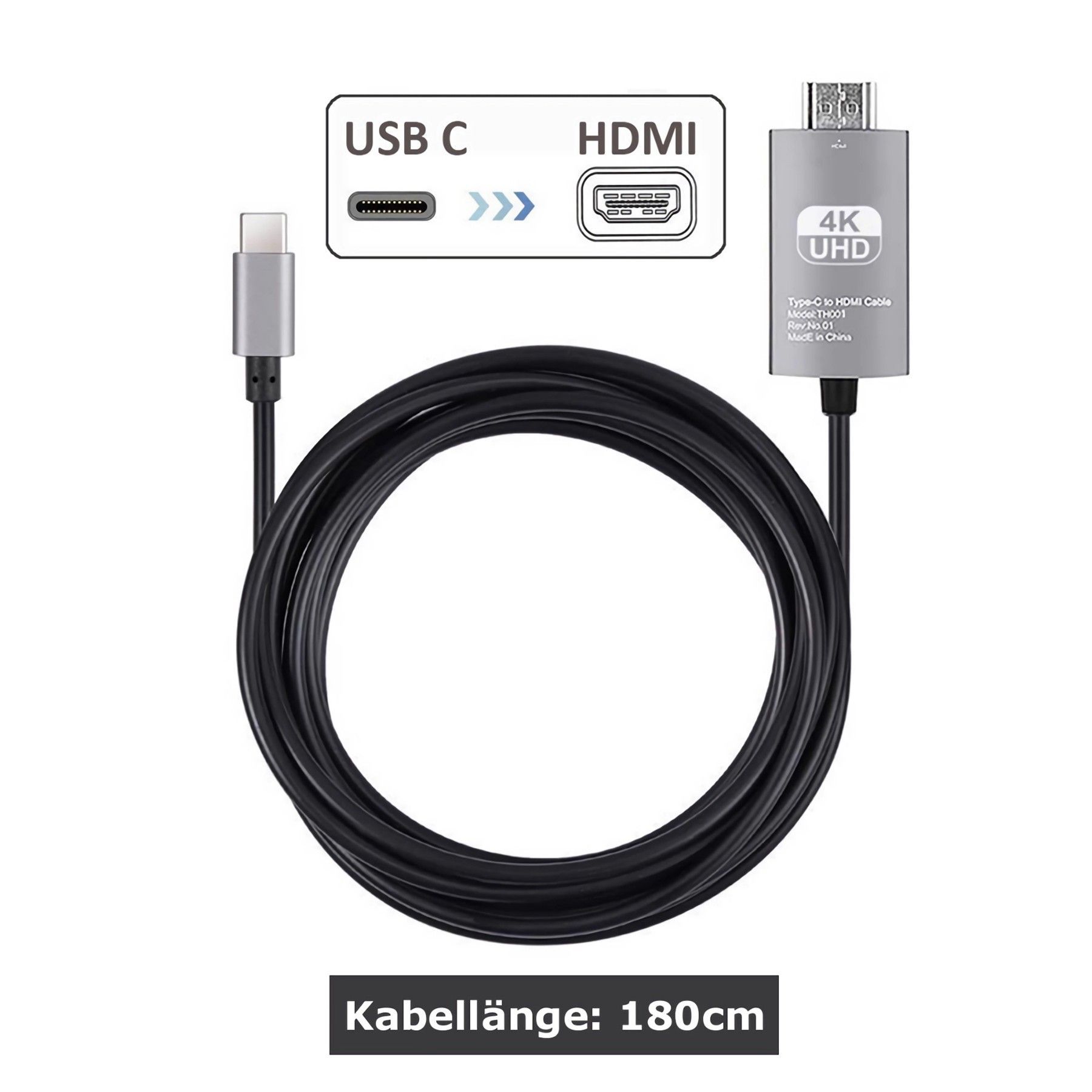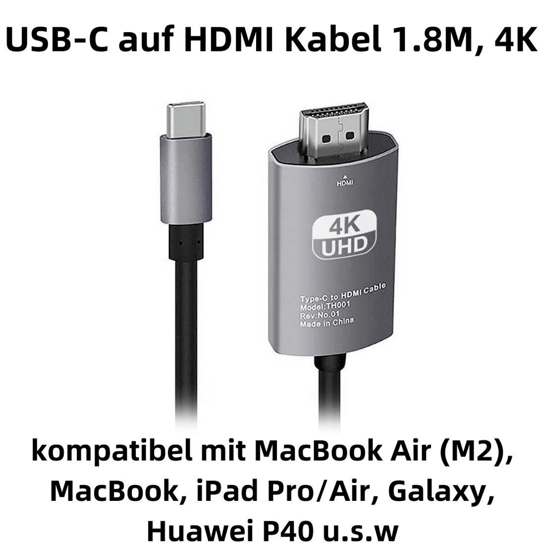 A77C USB-C auf HDMI Kabel Adapter 4K 1,8m , HDTV Projektor Monitor USB 3.1 Typ C