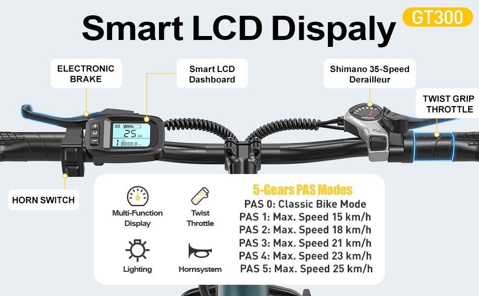 • Factory speed setting: 25 km/h (test rides must not exceed 5 km)