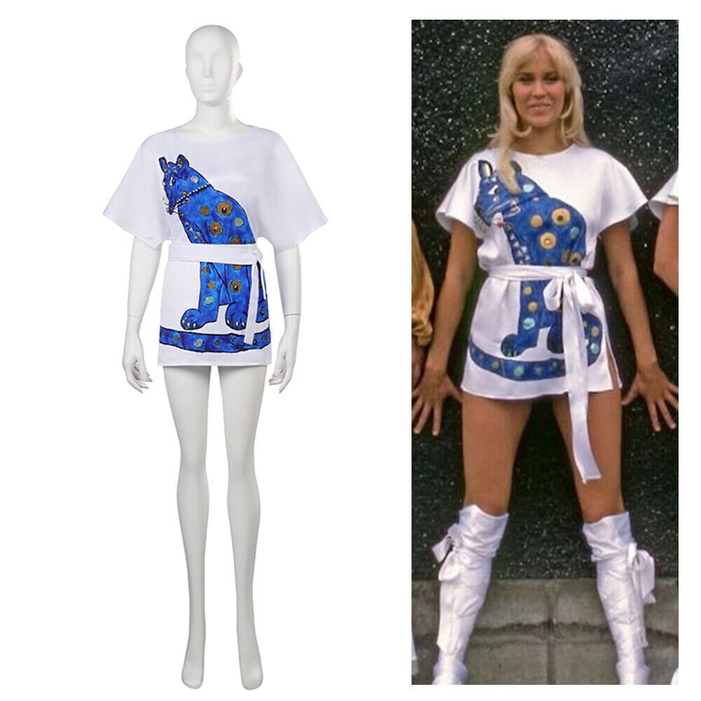 Abba Agnetha Cosplay Kostum Retro Kleid Outfit Anzug Rock Halloween Fancy Kleid