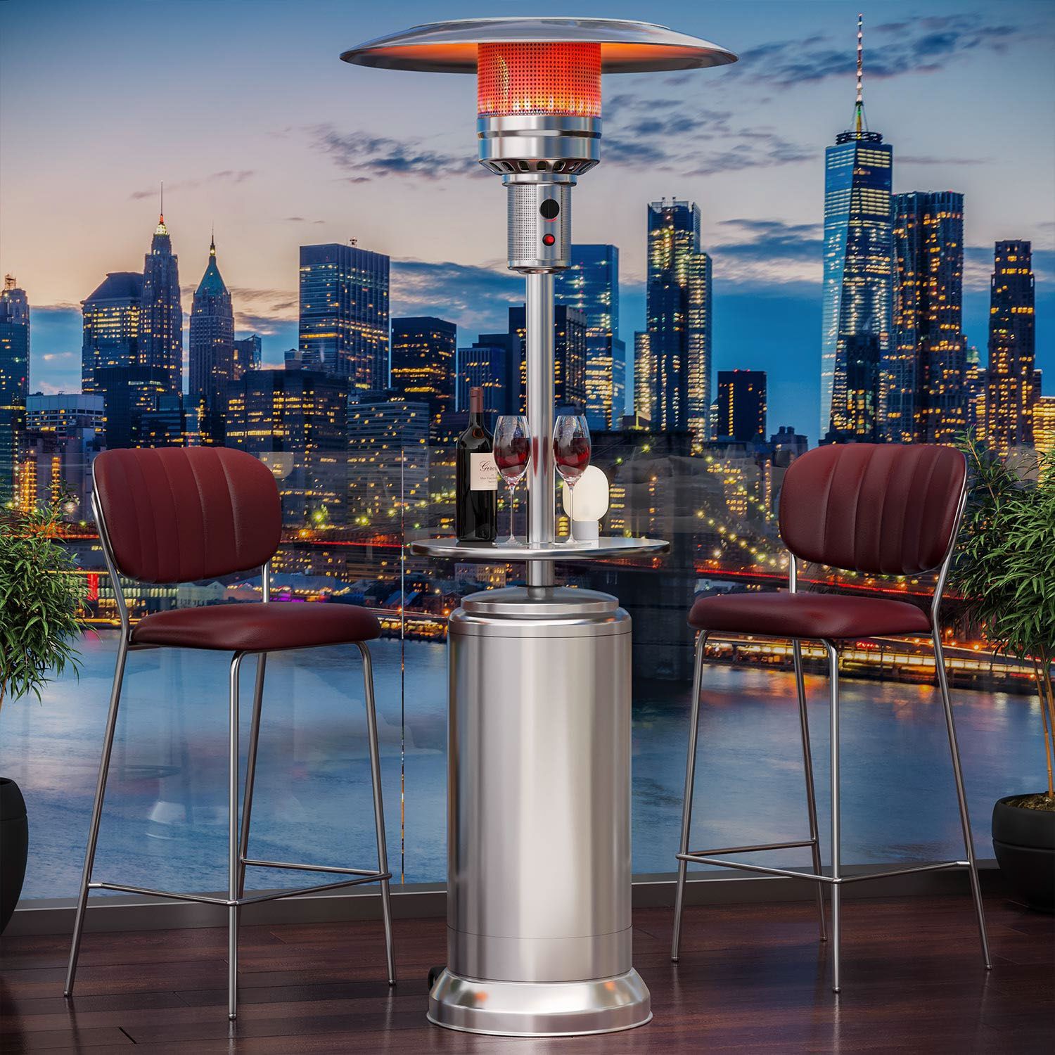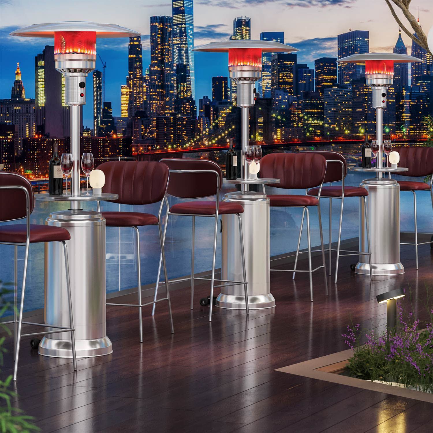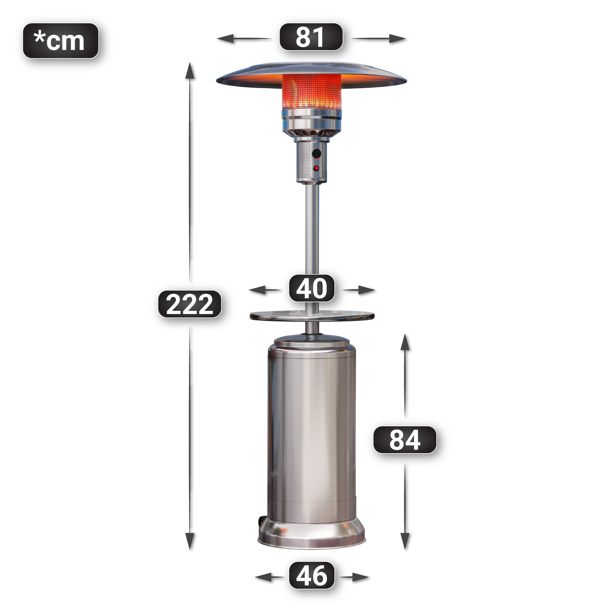 ABBEY | Gasheizstrahler | 2,2m | Edelstahl | 12kW | + Tisch | Heizpilz, Terrassenhei