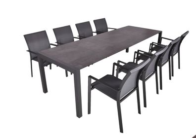 Garten-Sitzgruppe JOANA 9-tlg. Kunststoff Dunkelgrau Gartenmöbel-Set Gartengarnitur