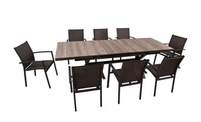 Garten-Sitzgruppe HAUKE 9-tlg. Kunststoff Dunkelbraun Gartenmöbel-Set Gartengarnitur