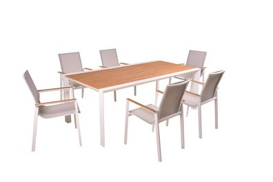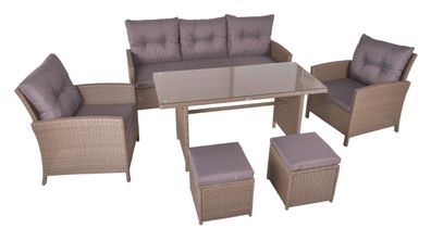 Garten-Sitzgruppe JONAS 7-tlg. Kunststoff Hellbraun Gartenmöbel-Set Gartengarnitur