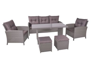 Garten-Sitzgruppe TOVE 6-tlg. Kunststoff Grau Gartenmöbel-Set Gartengarnitur