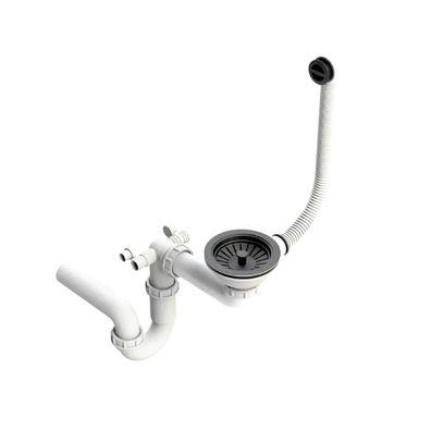 • QLS Manueller Einbecken-Siphon 3 1/2 Schwarz Manuell Abdeckstopfen Platzsparend 11435