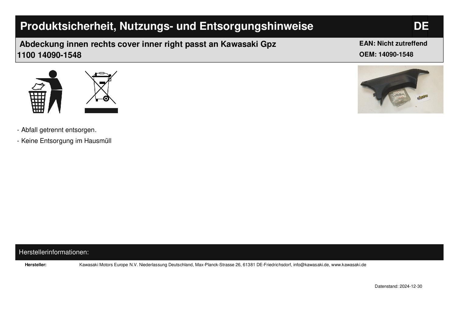 Abdeckung innen rechts cover inner right passt an Kawasaki Gpz 1100 14090-1548