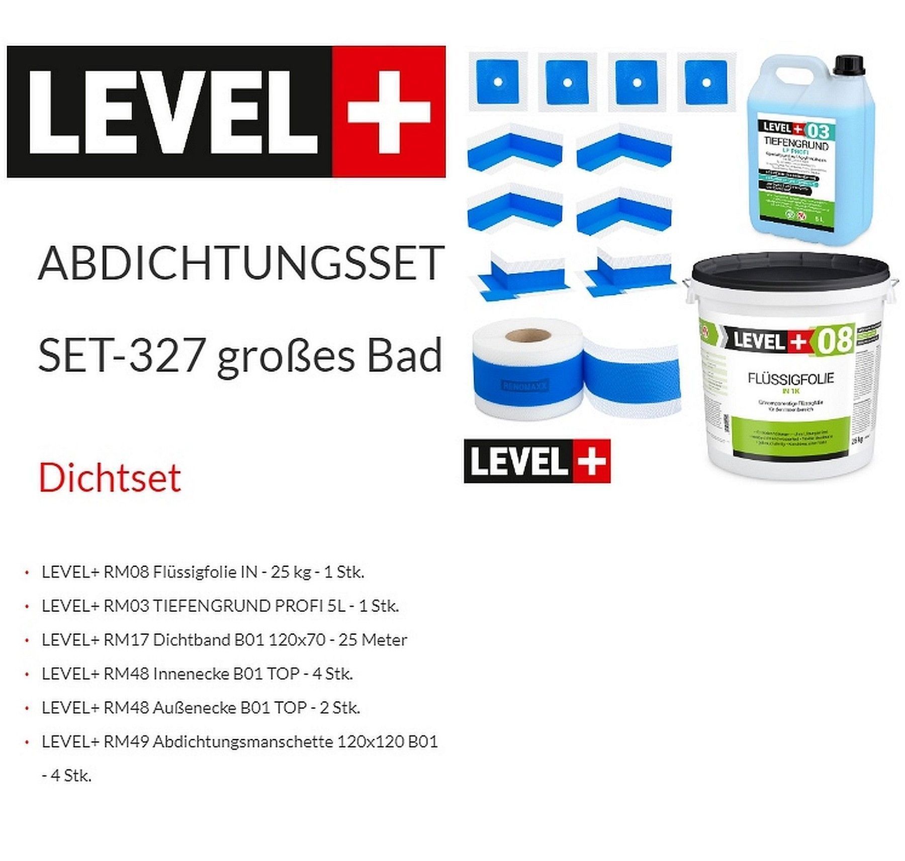 Abdichtungsset Flüssigfolie 25 kg Dichtband Tiefgrund großes Bad Dusche SET327