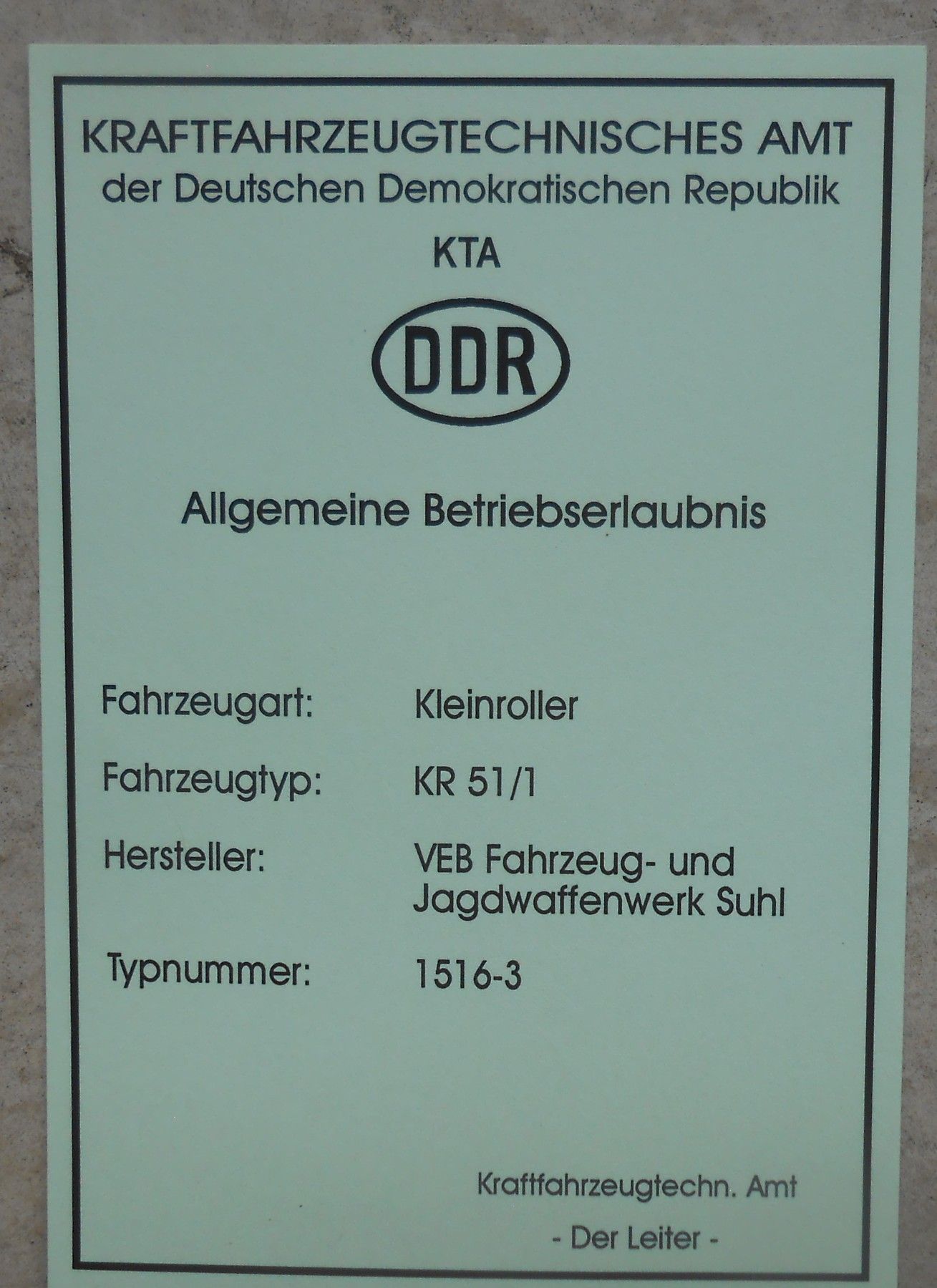 ABE, DDR, Kleinroller Schwalbe KR51/1 mit Stempel