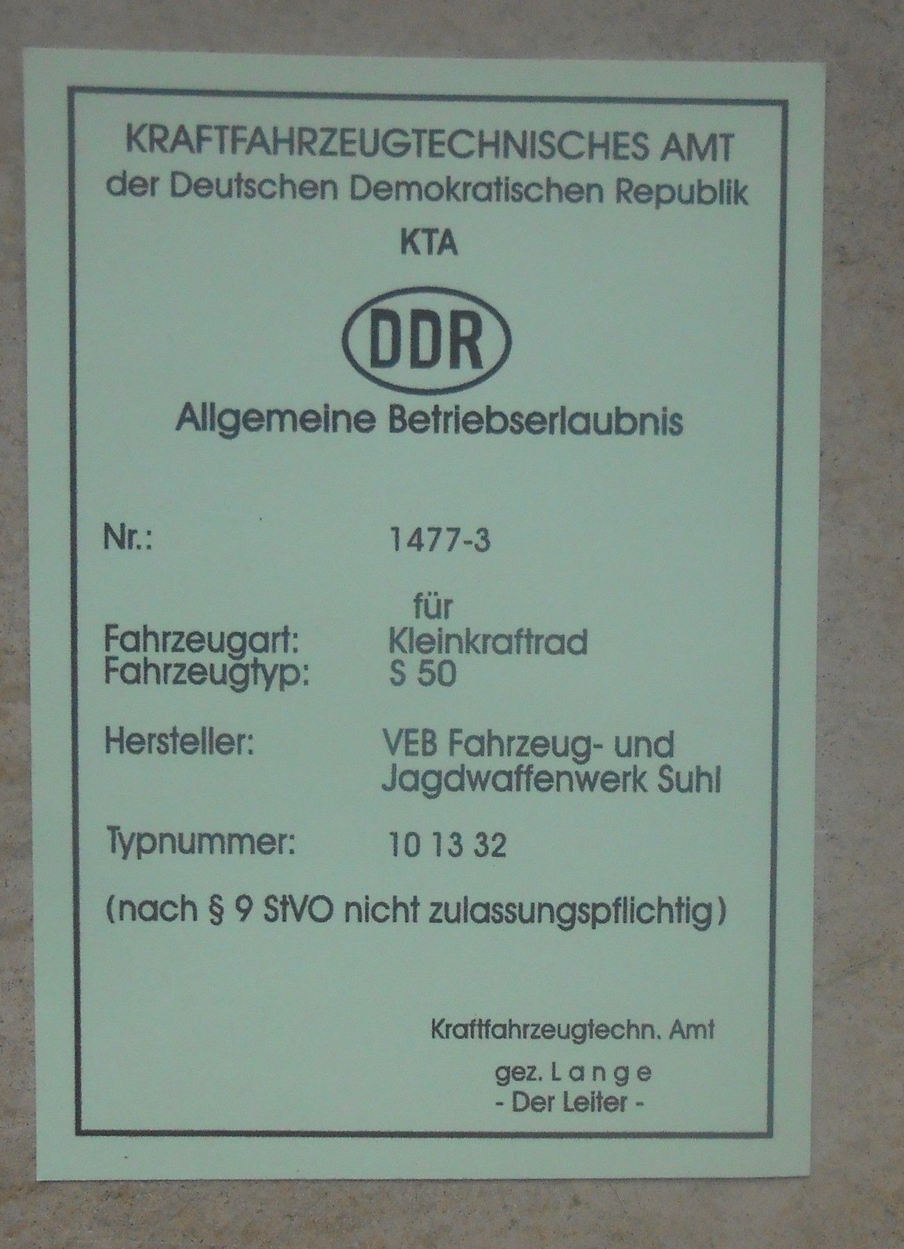 ABE Kleinkraftrad Simson S50 DDR Oldtimer
