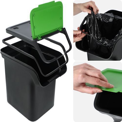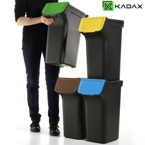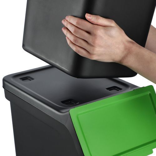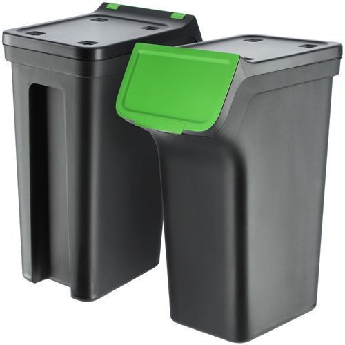 Abfallbehälter mit Deckel, 4x25L, Schwarz