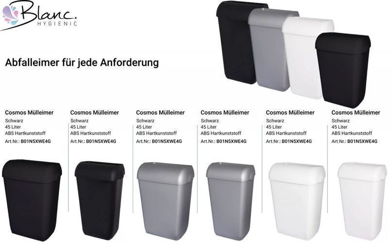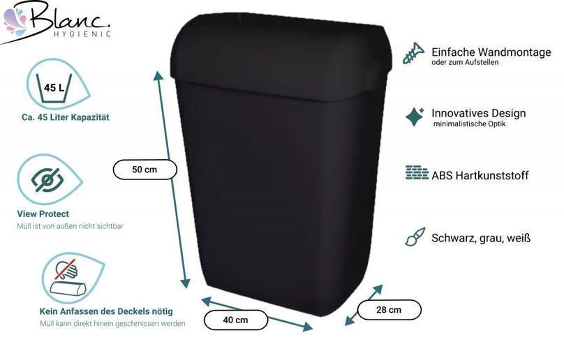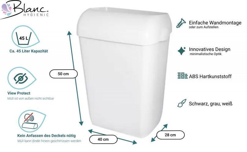 Abfallbehälter, Mülleimer, Blanc, ca. 45-Liter hängend, Wandmontage oder stehend, mit