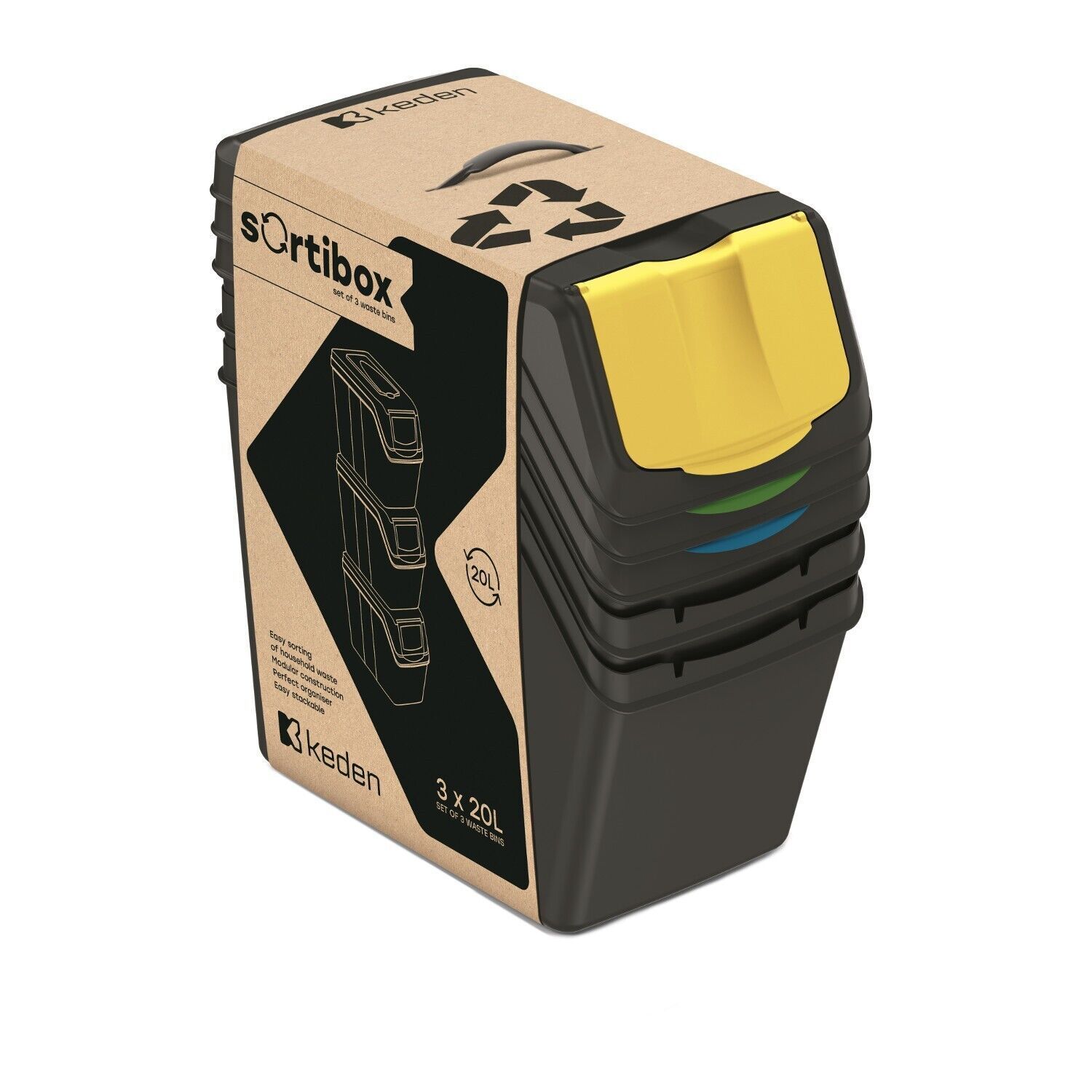 Abfalleimer Mülleimer Keden ISWB20S3 Sortibox Mülltrennung Behälter 3x20L Set