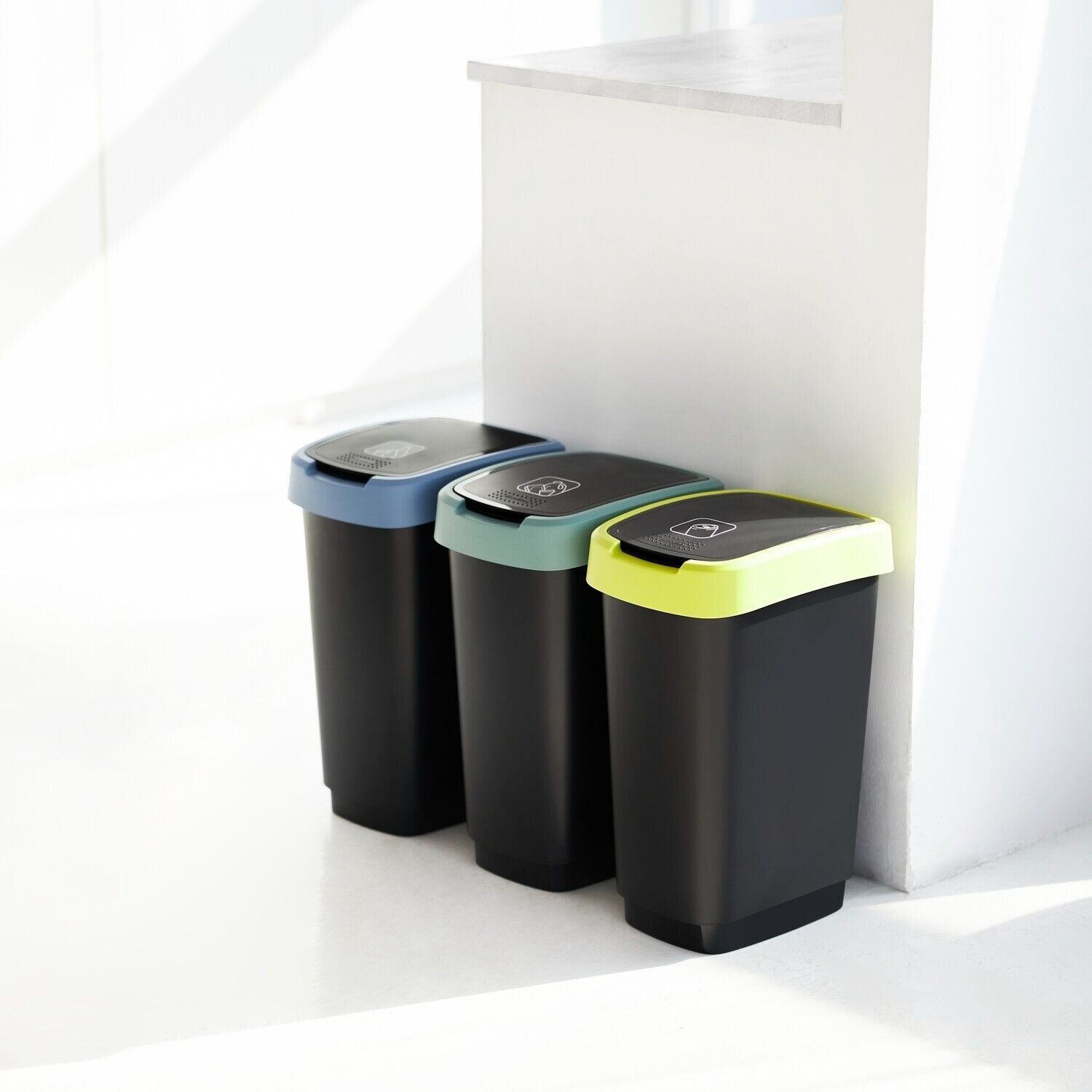 Rotho Abfallsammler Swingeimer Mülleimer Klappdeckel 50L Schwarz- Blau