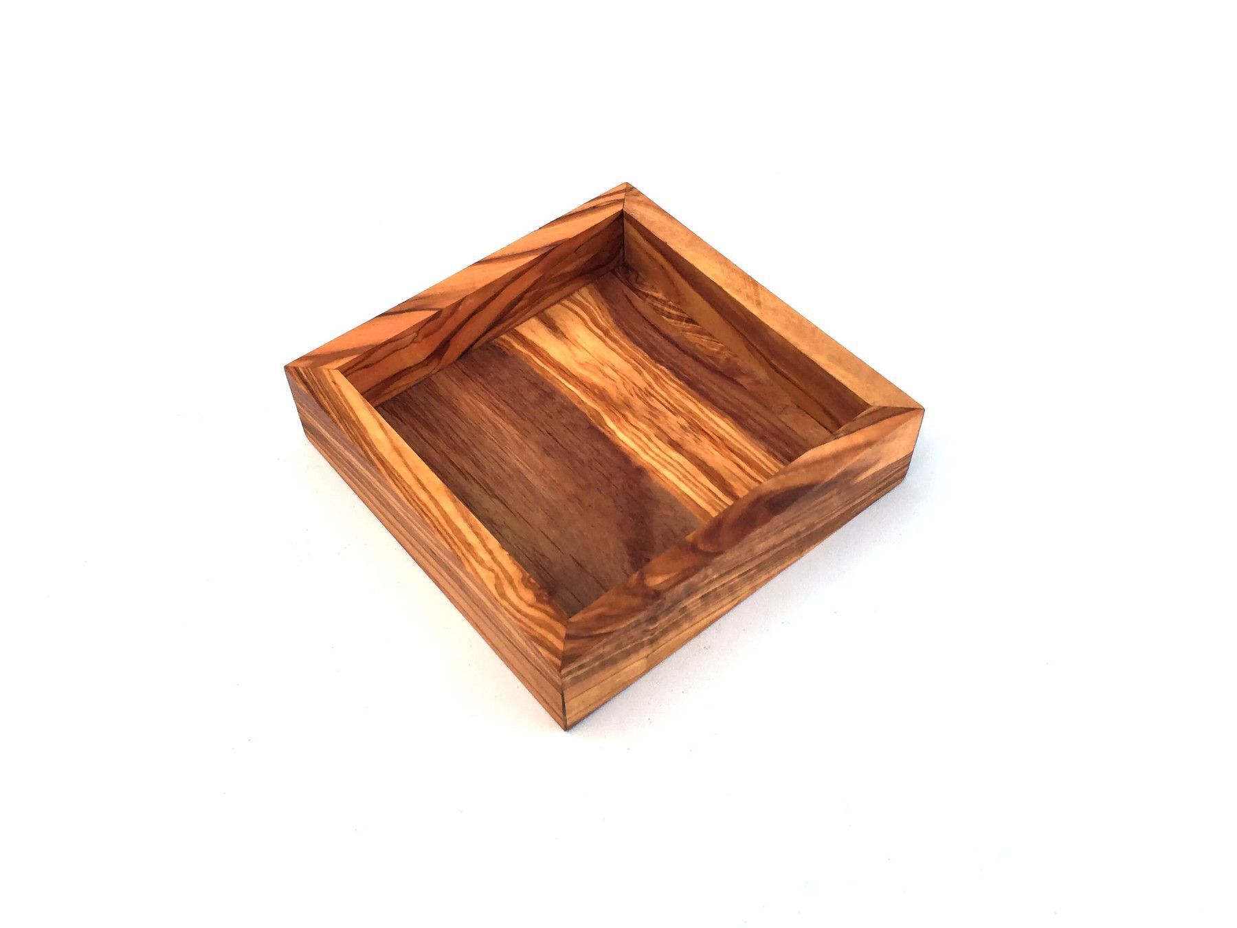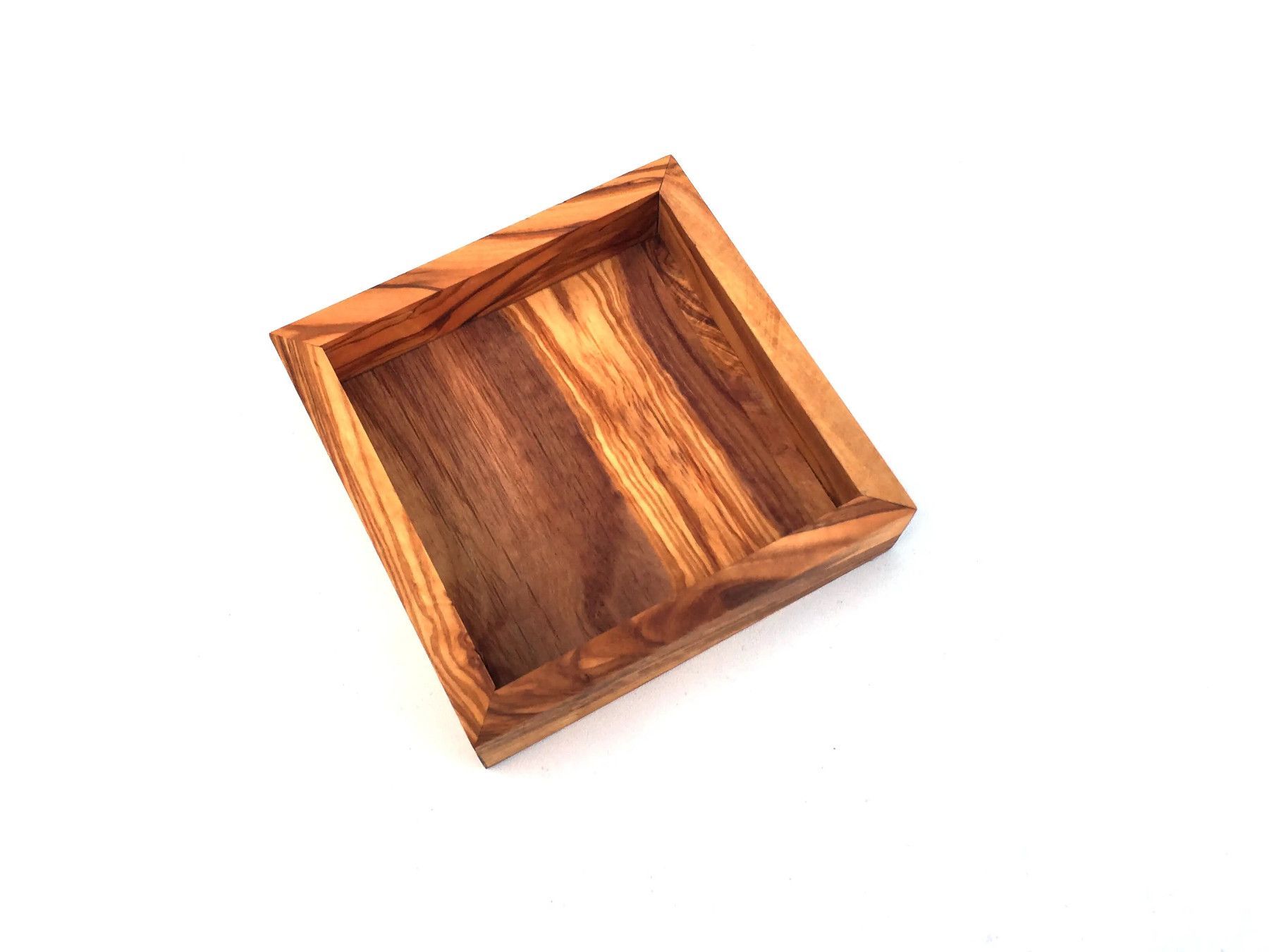 Ablage quadratisch 12 cm Holz Tablett handgefertigt aus Olivenholz