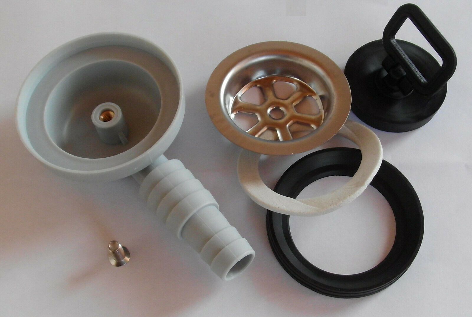 Ablaufgarnitur Spüle Spülbecken Stöpsel Ablauf 1,5 Zoll, grau, 90° <) 44610p NEU