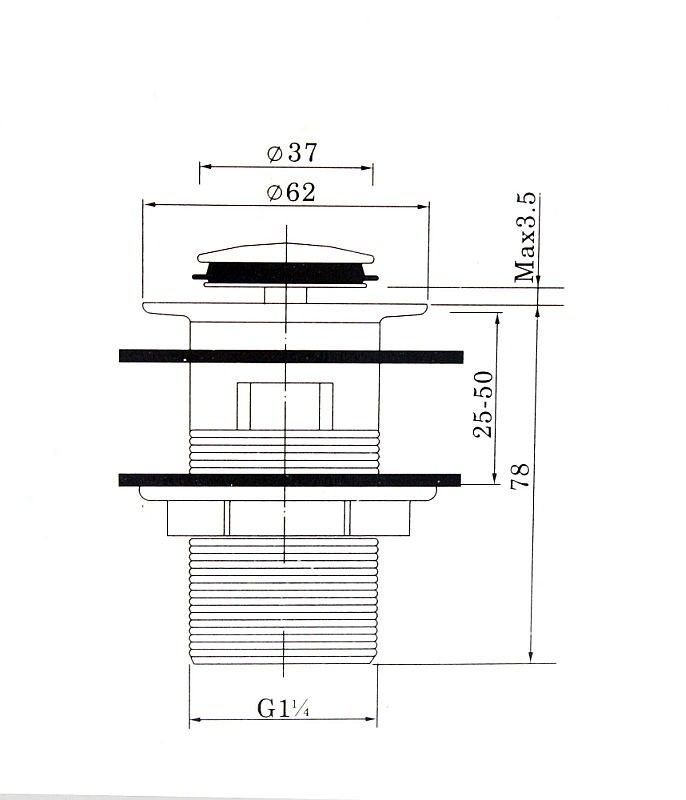 Ablaufventil Click - Clack Press-Exzenter mit Überlauf Ablaufsystem Chrom