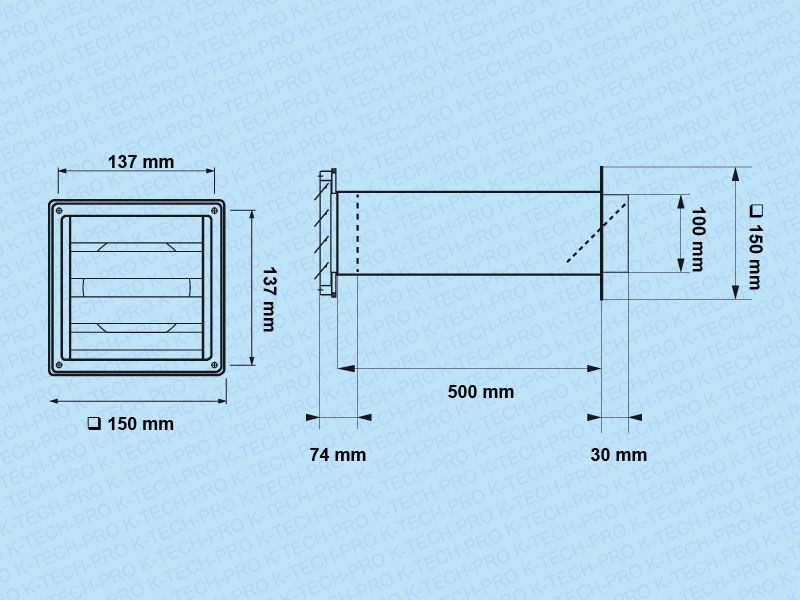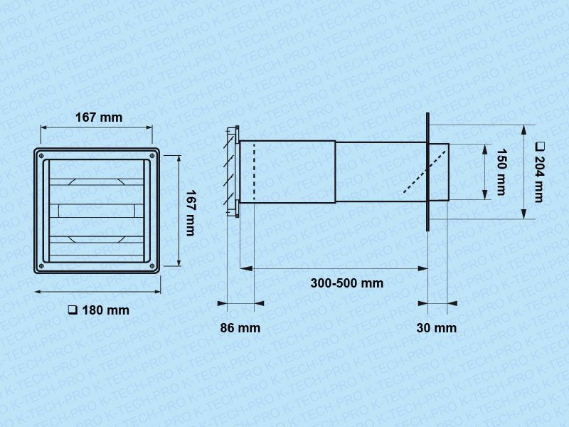 Abluft-Mauerkasten Edelstahl mit beweglichen Lamellen