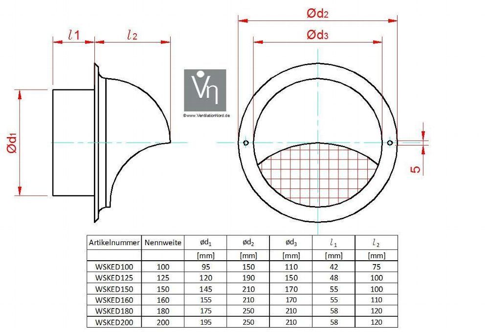 Ablufthaube NW160 Aussenhaube Lufthaube Mauerkasten Edelstahl DunstabzugWSKED160