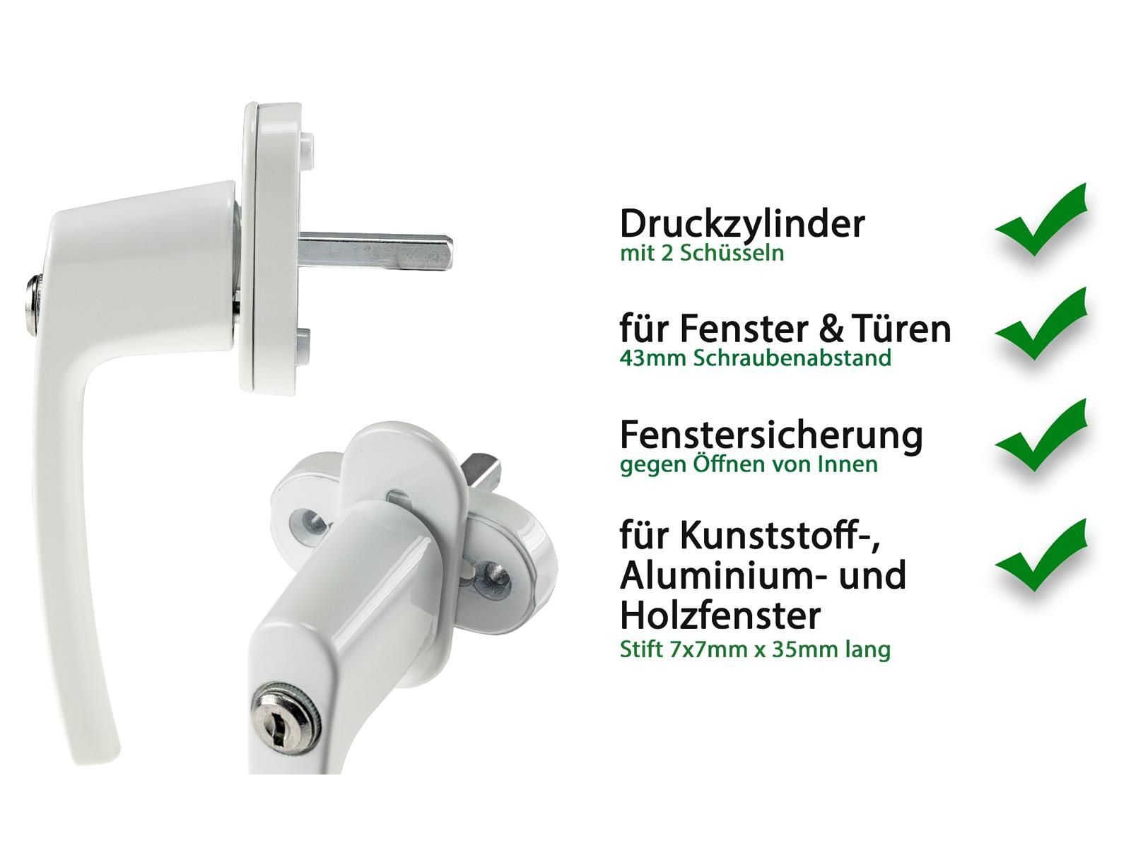 ChiliTec Abschließbarer Fenstergriff, weiß 2 Schrauben, 2 Schlüssel