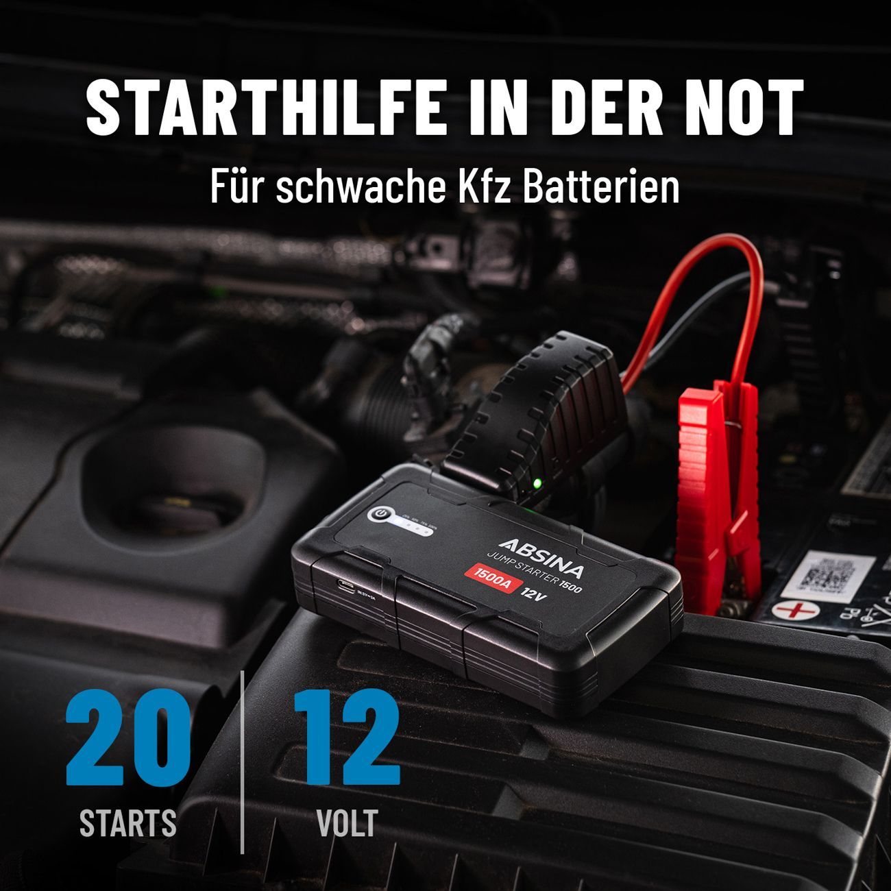 Absina Jumpstarter 1500 mit Starthilfekabel 2500mAh 1500A