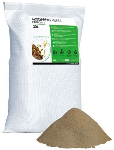 Das Absorptionsmittel Fibercan+ ist 100% natürlich und sorgt für eine sofortige Absorption von Öl oder Fett.