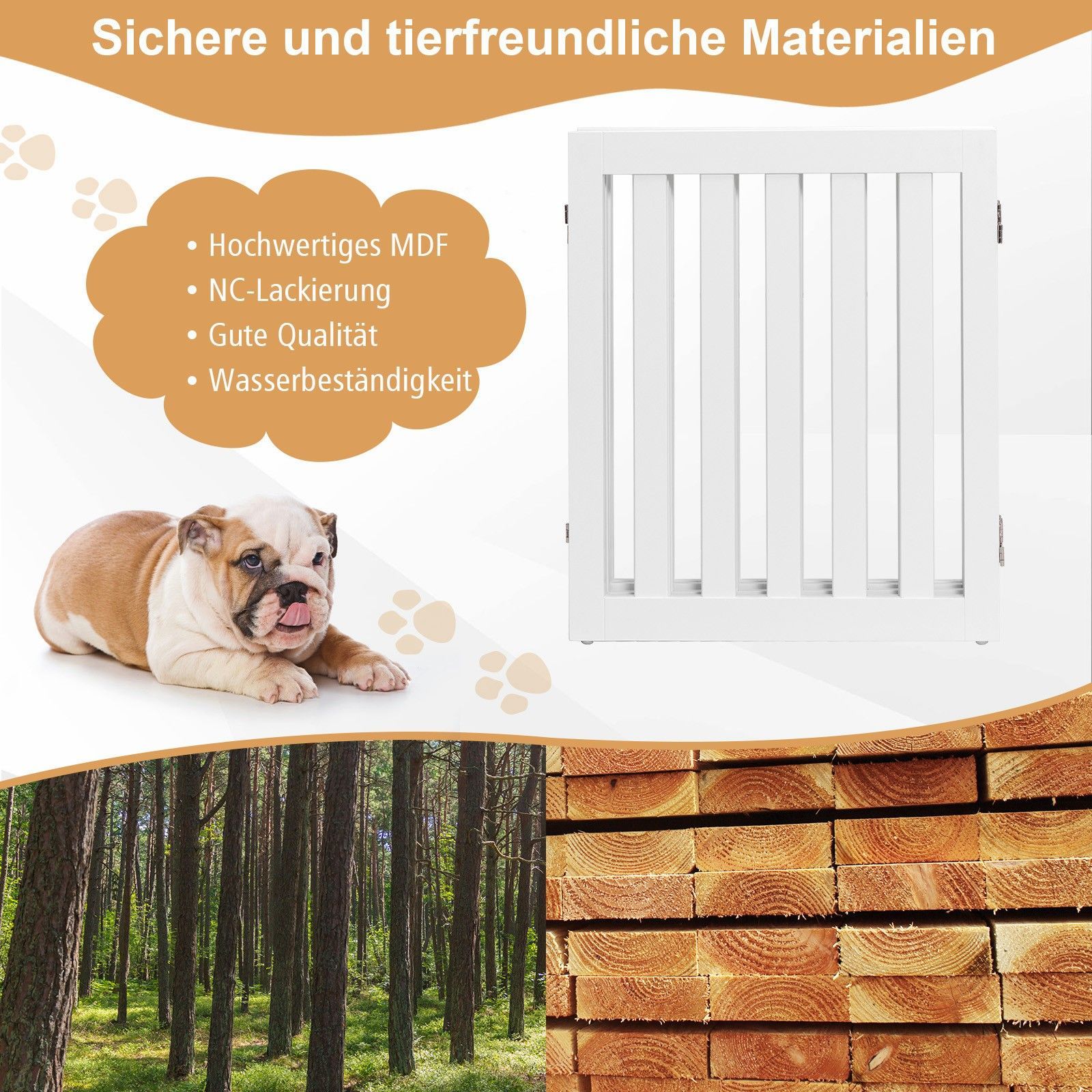 Absperrgitter Hunde 60cm Hoch, Schutzgitter Holz, Treppengitter klappbar