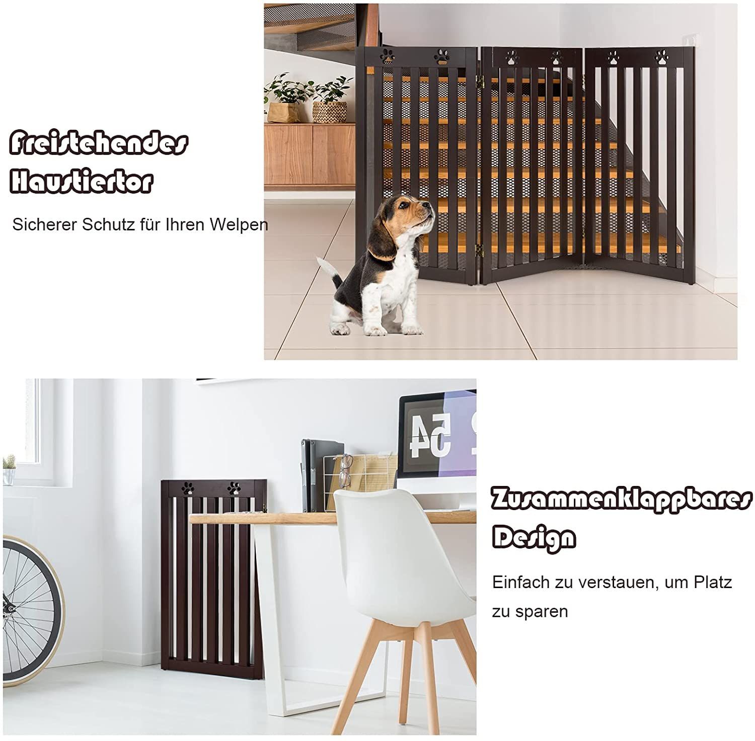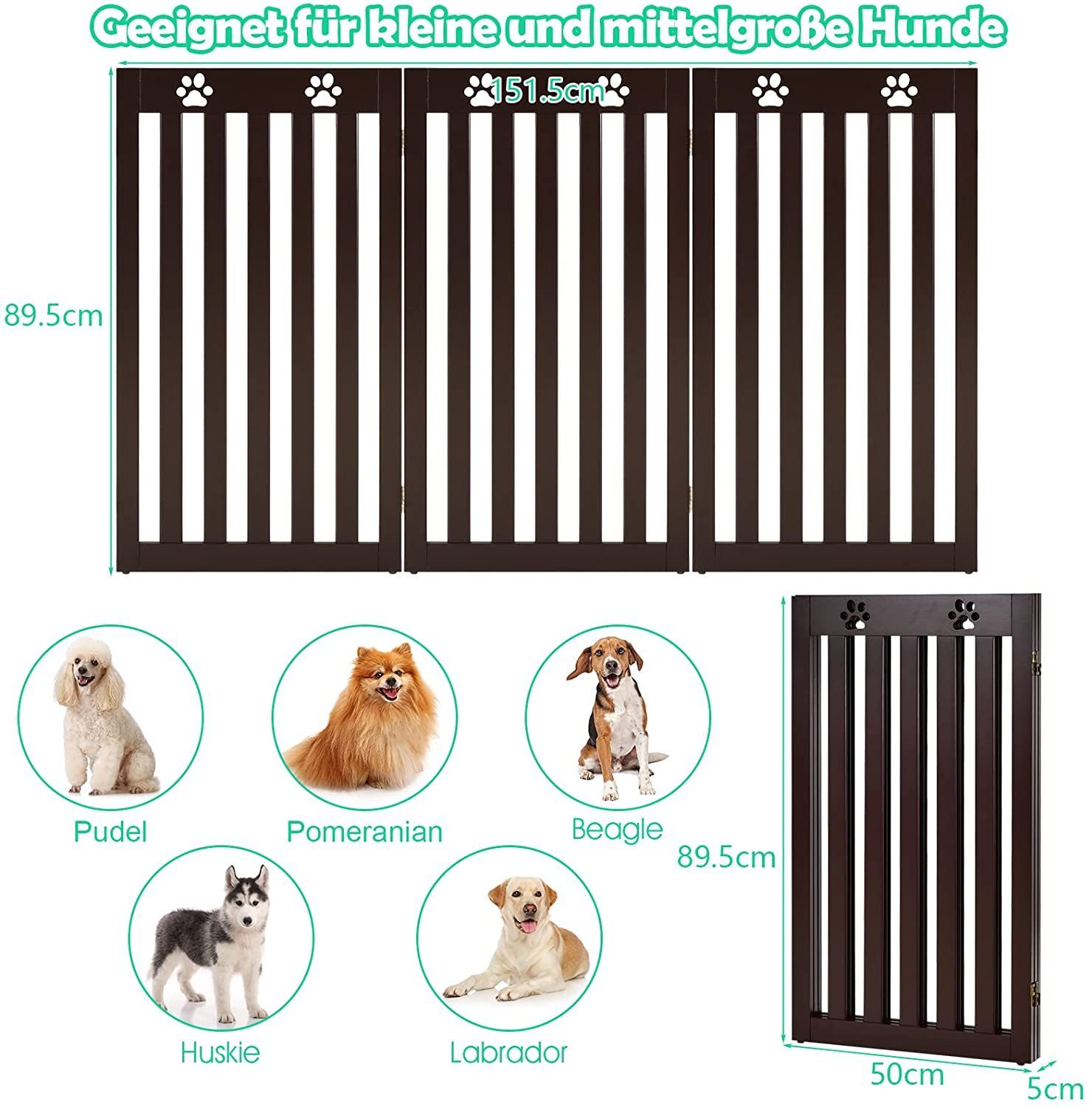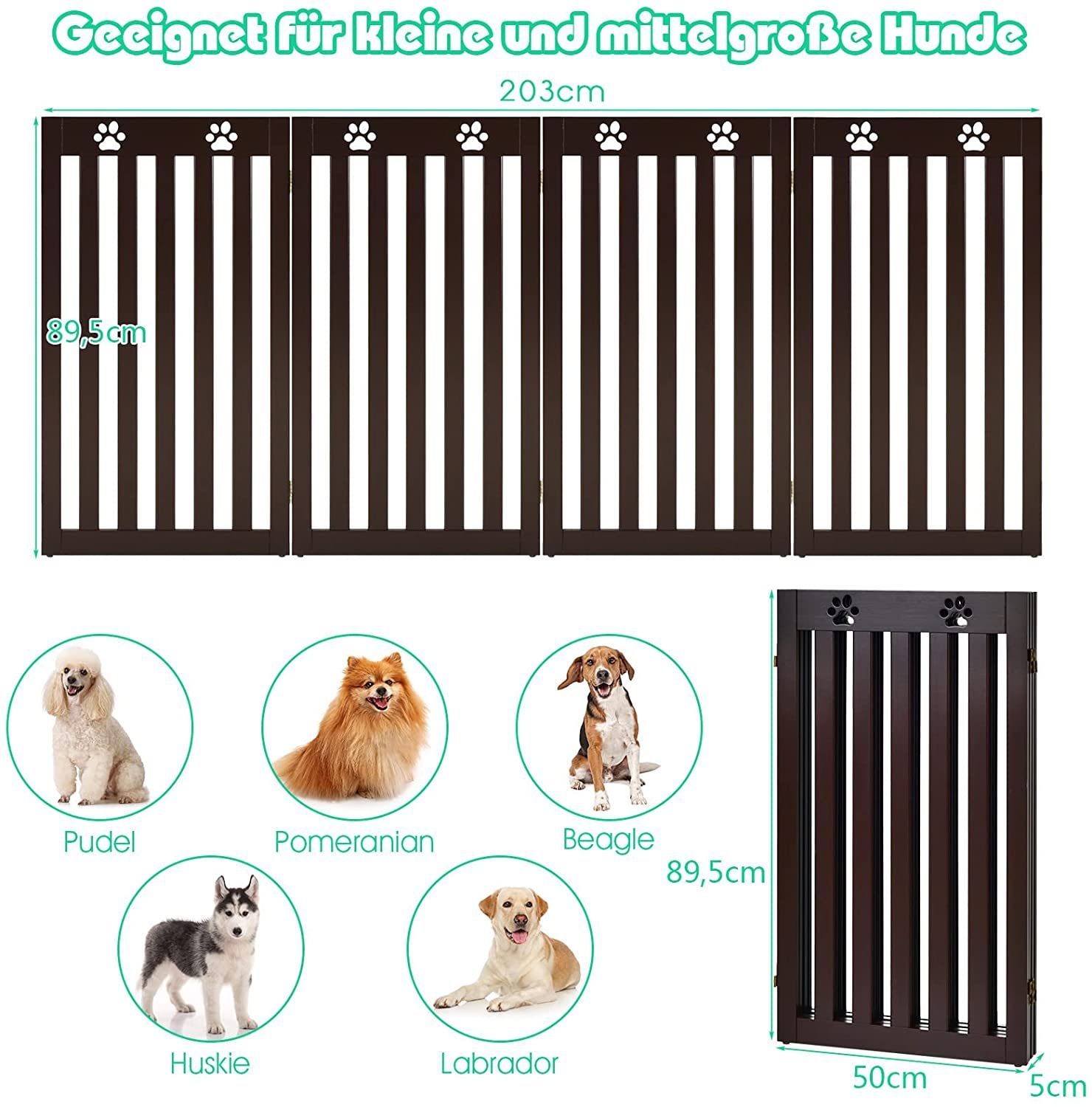 Absperrgitter Hunde 89cm Hoch, Schutzgitter Holz klappbar, Treppengitter flexibel