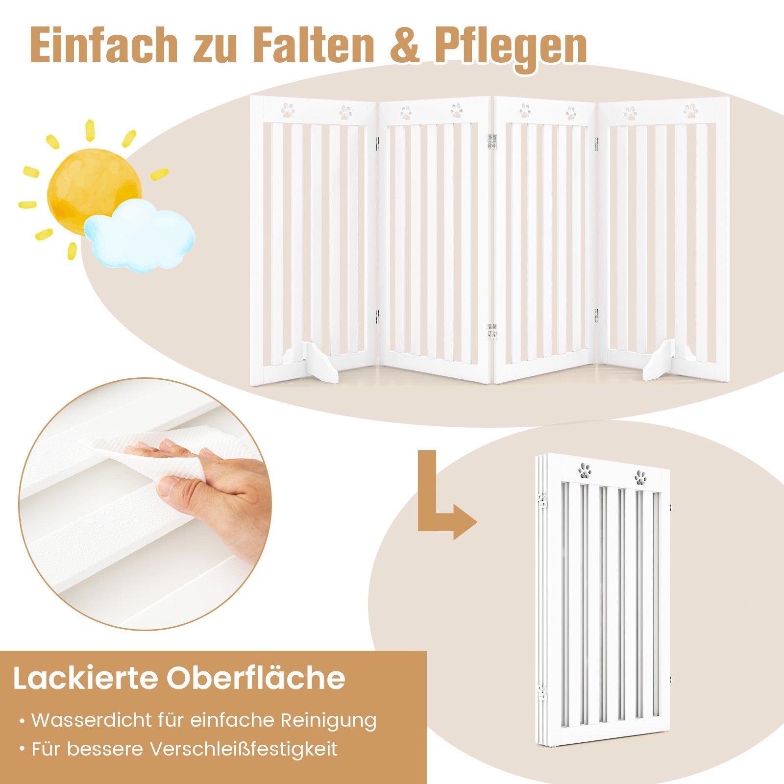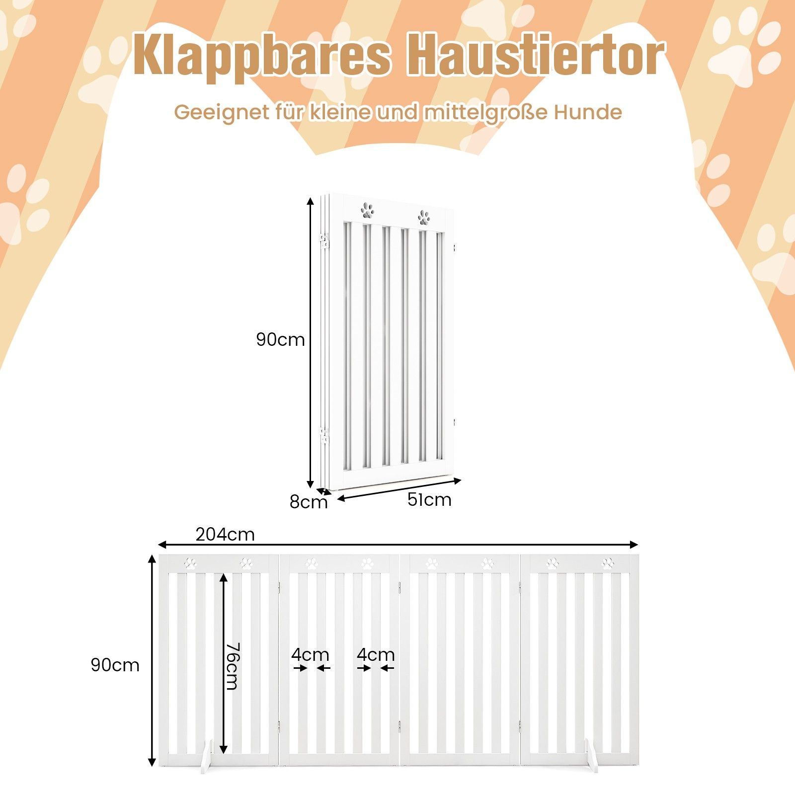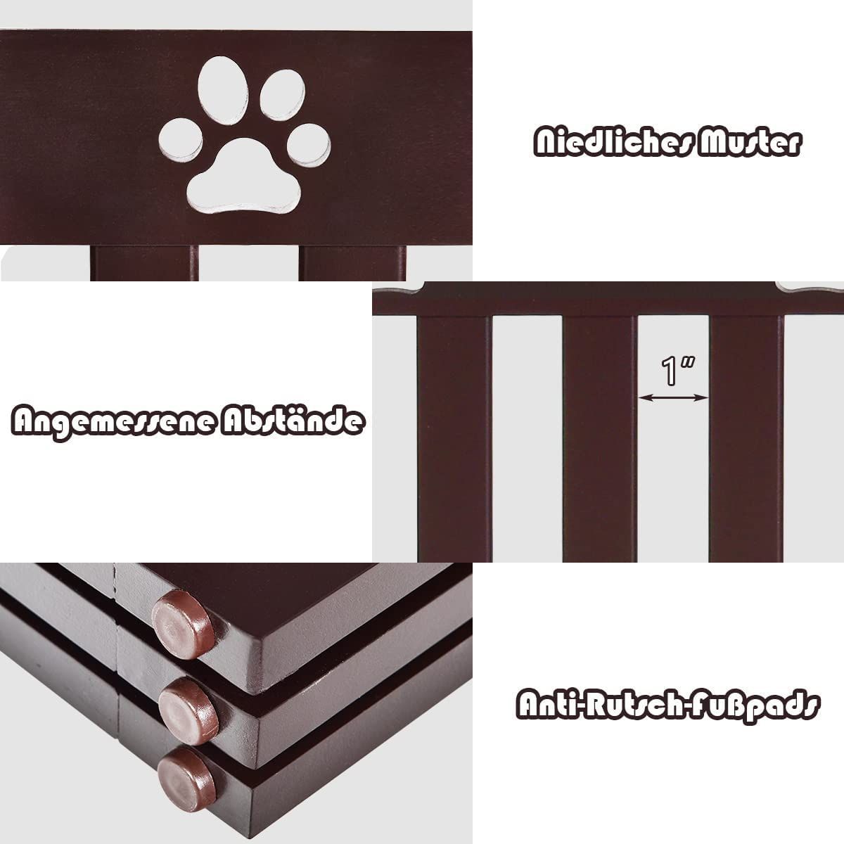 Absperrgitter Hunde 89cm Hoch, Schutzgitter Holz klappbar, Treppengitter flexibel