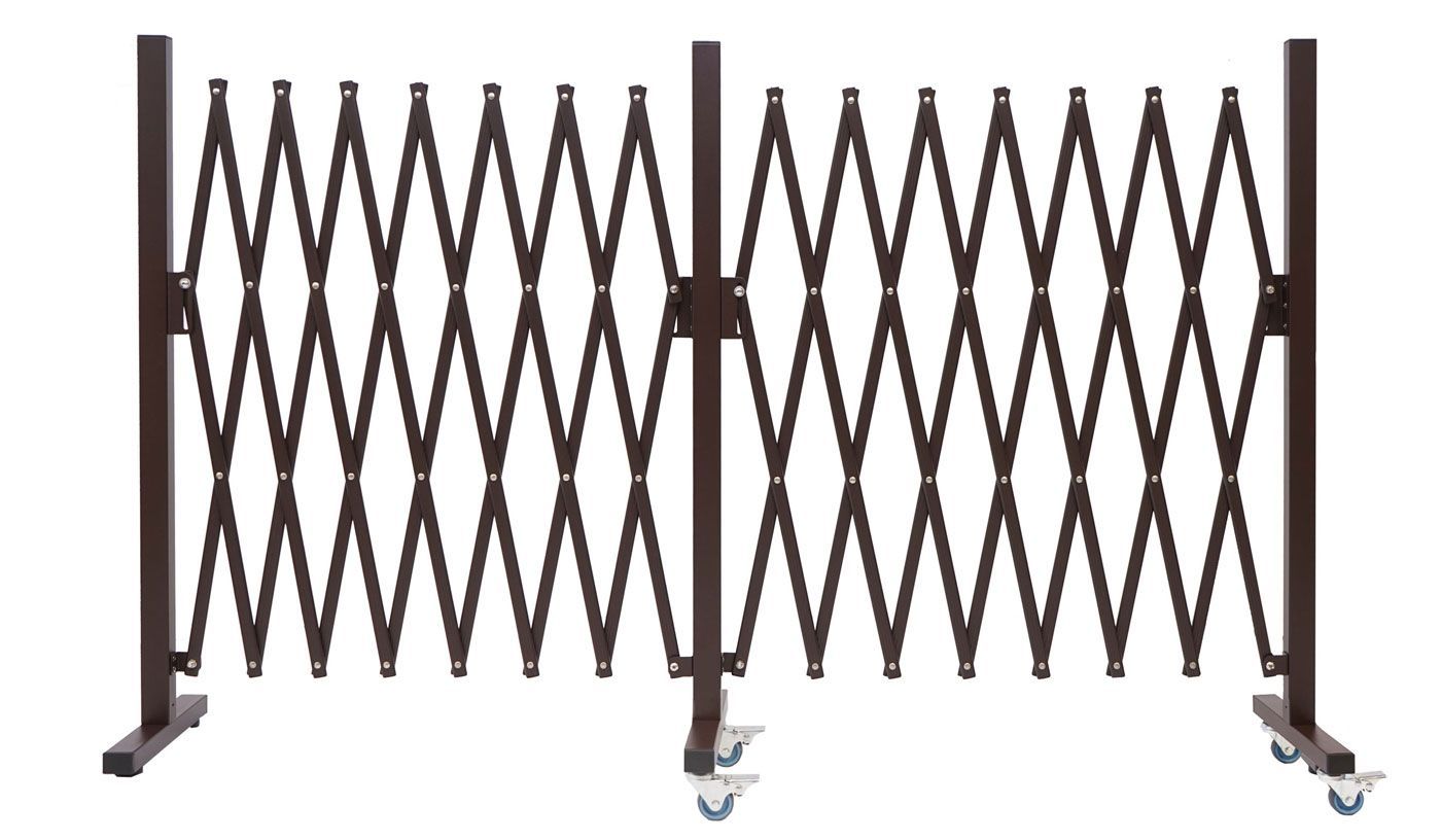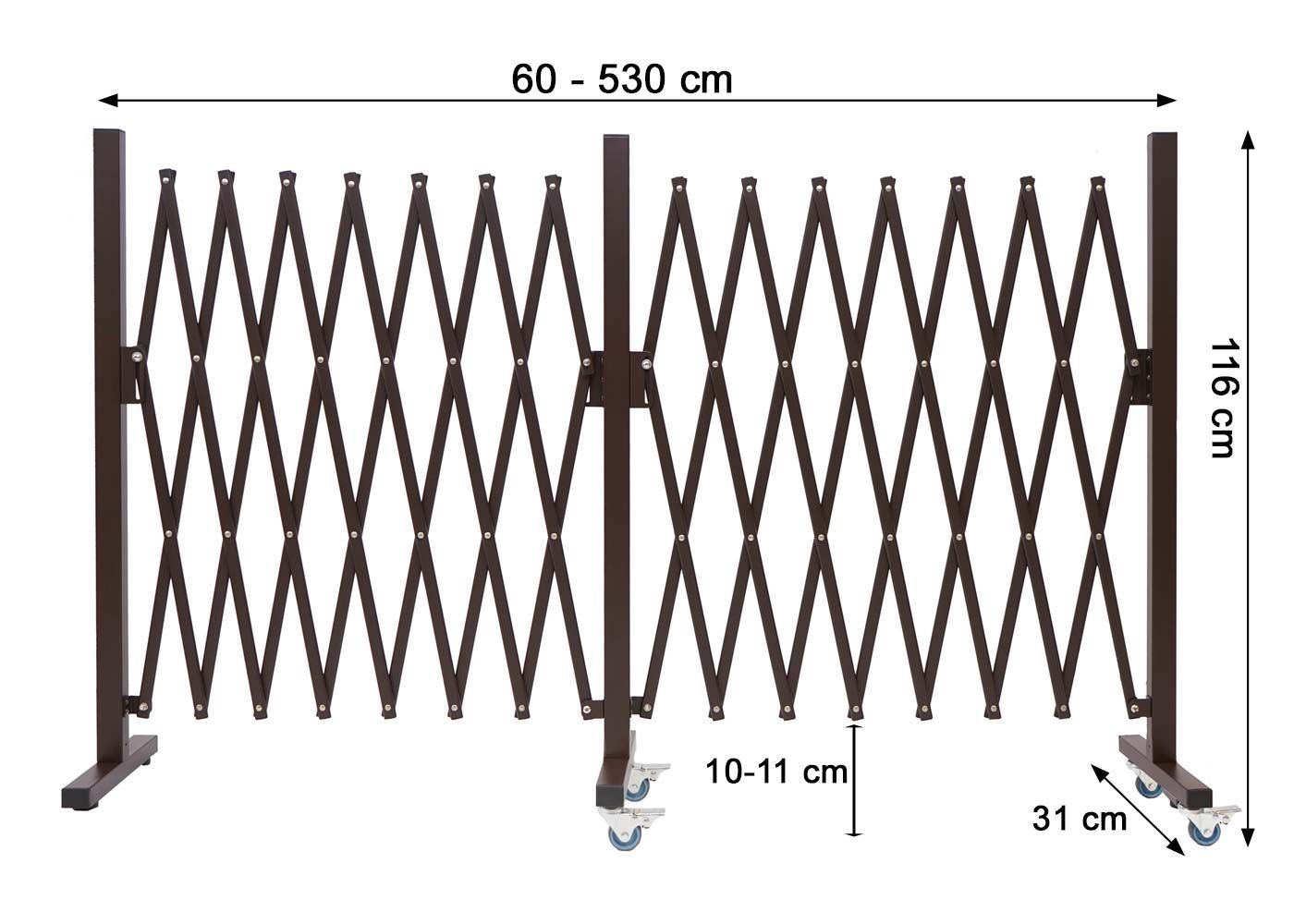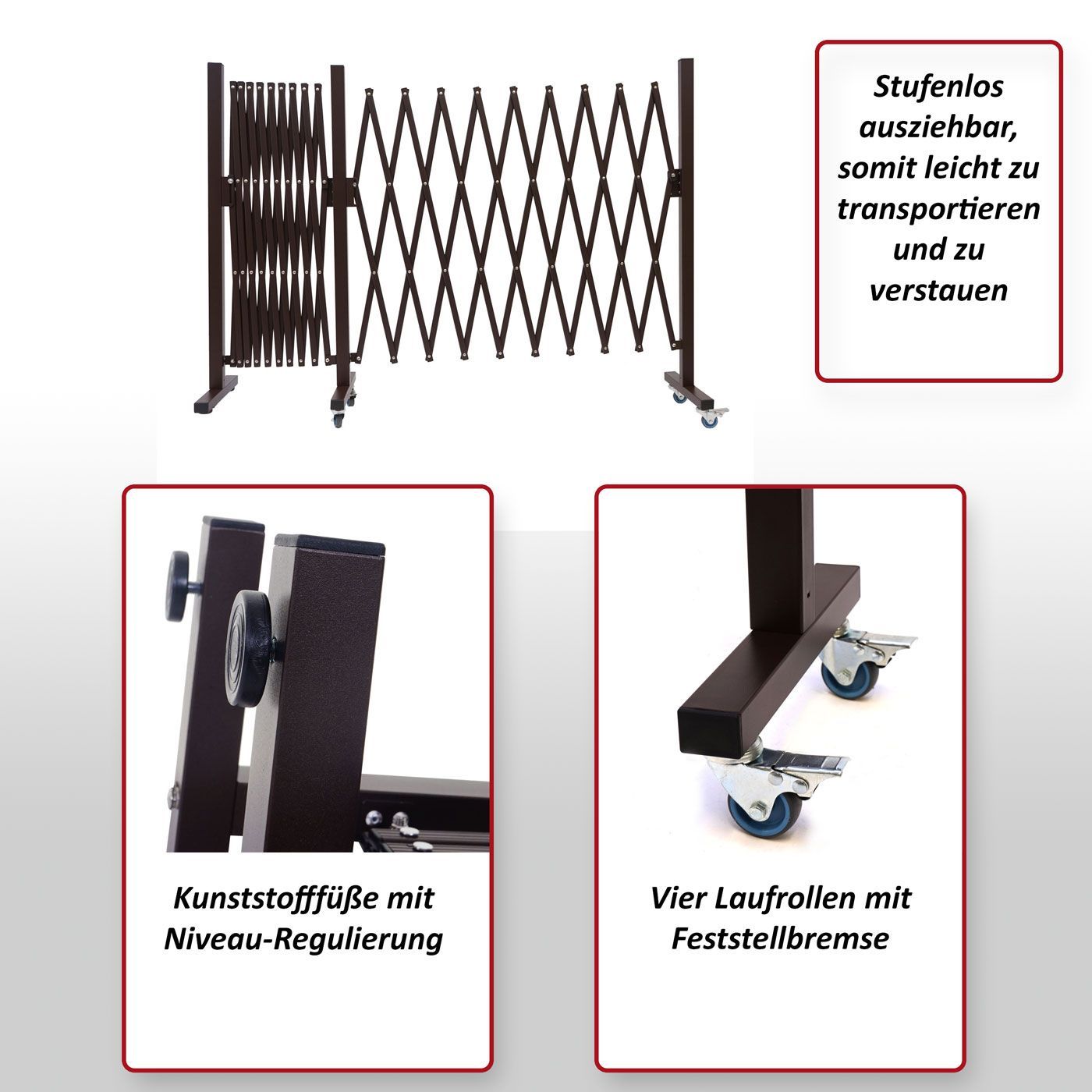Mendler Absperrgitter HWC-B34, Scherengitter Trenngitter, Alu ausziehbar Laufrollen braun