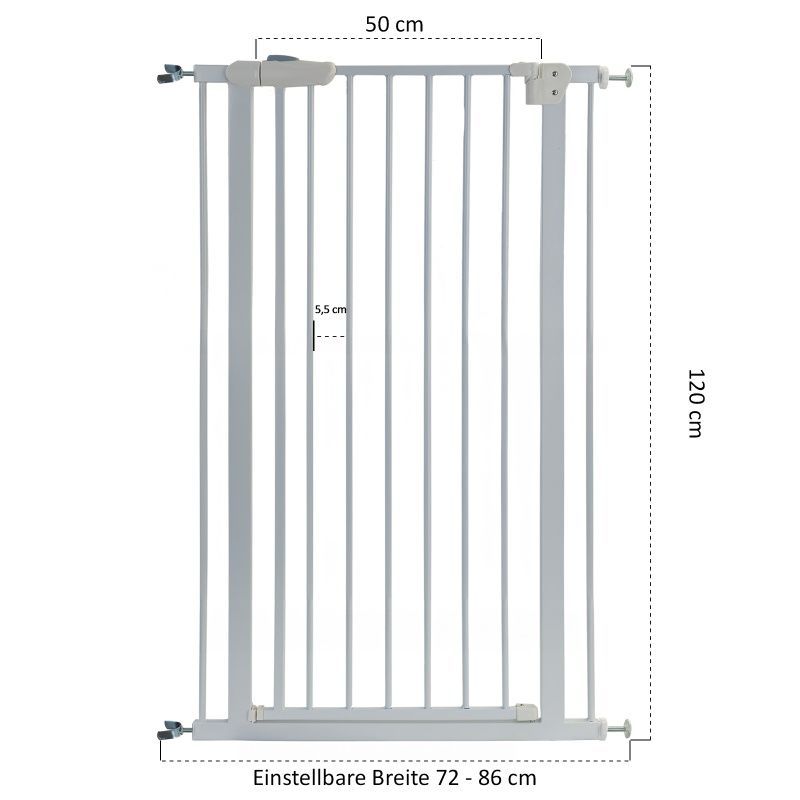 Absperrgitter Treppenschutzgitter Metall weiß + Y Halter 72 -86cm 120cm hoch