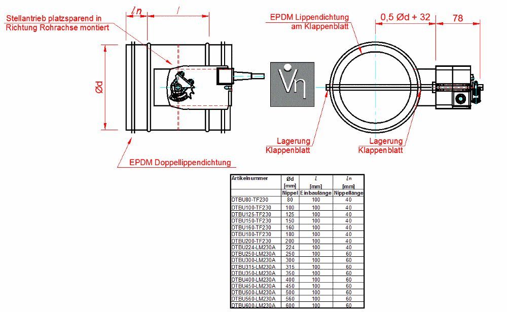 Absperrklappe Motor DTBU 80 - 250 mm dichtschließend Wickelfalzrohr Belimo TF230