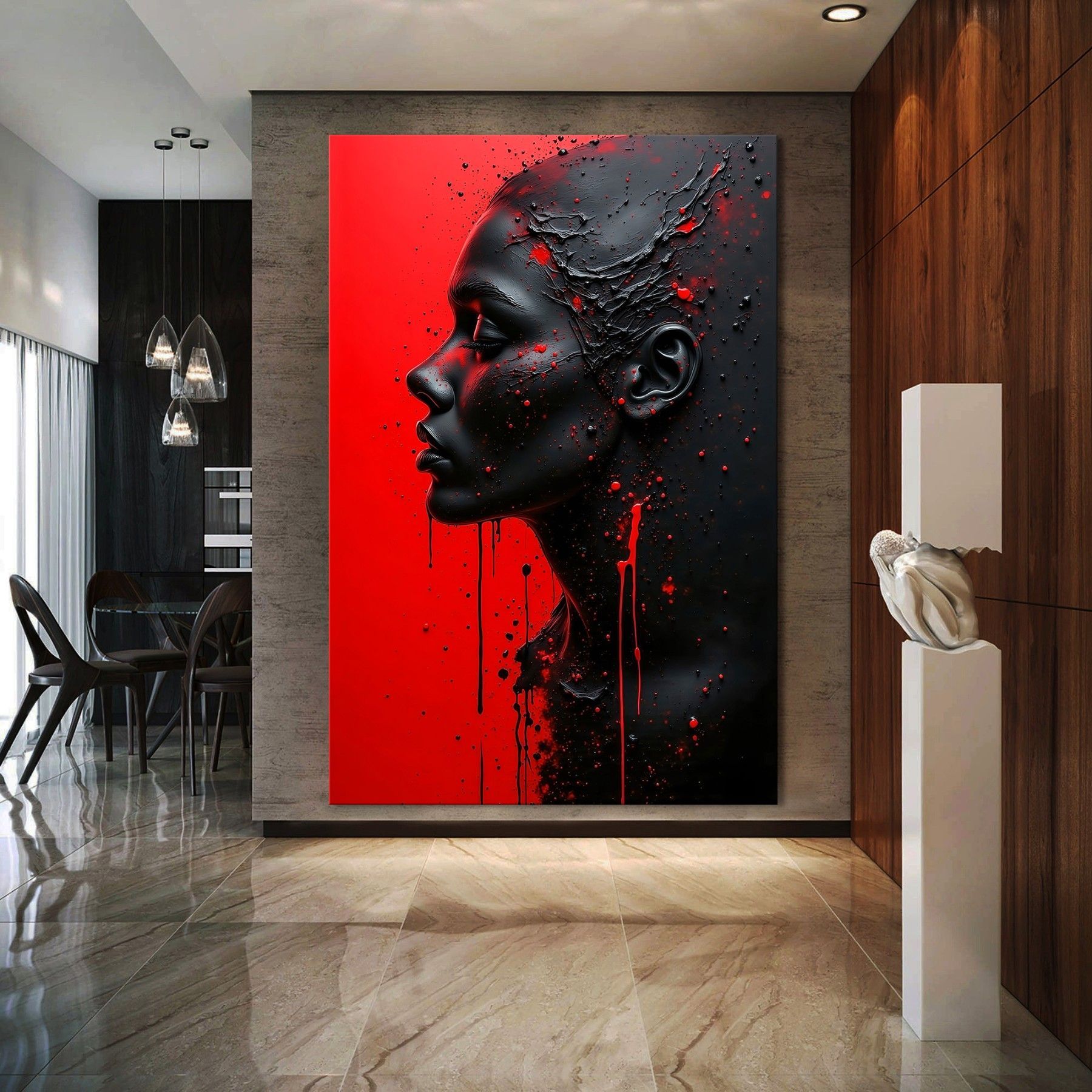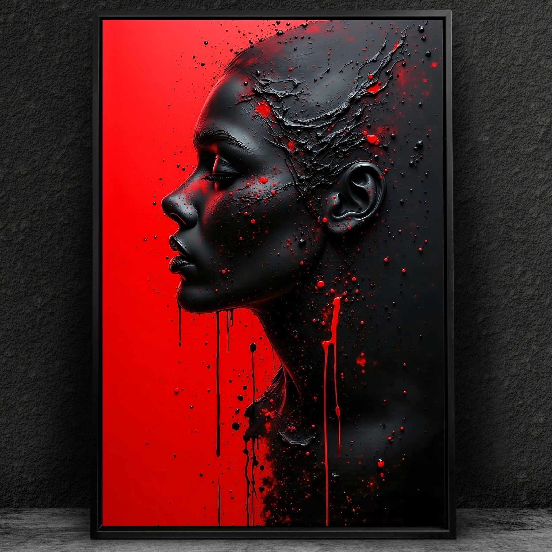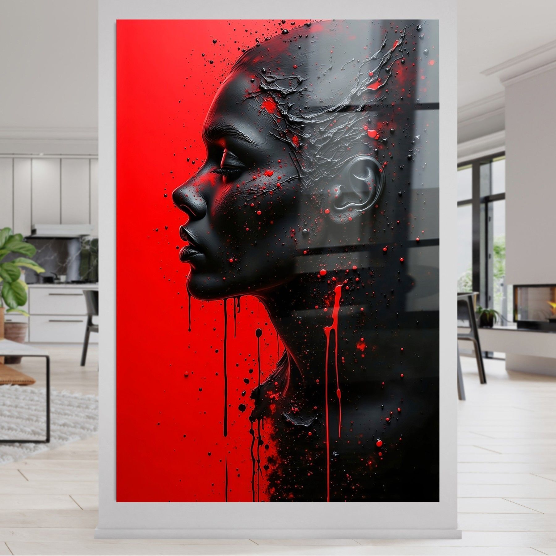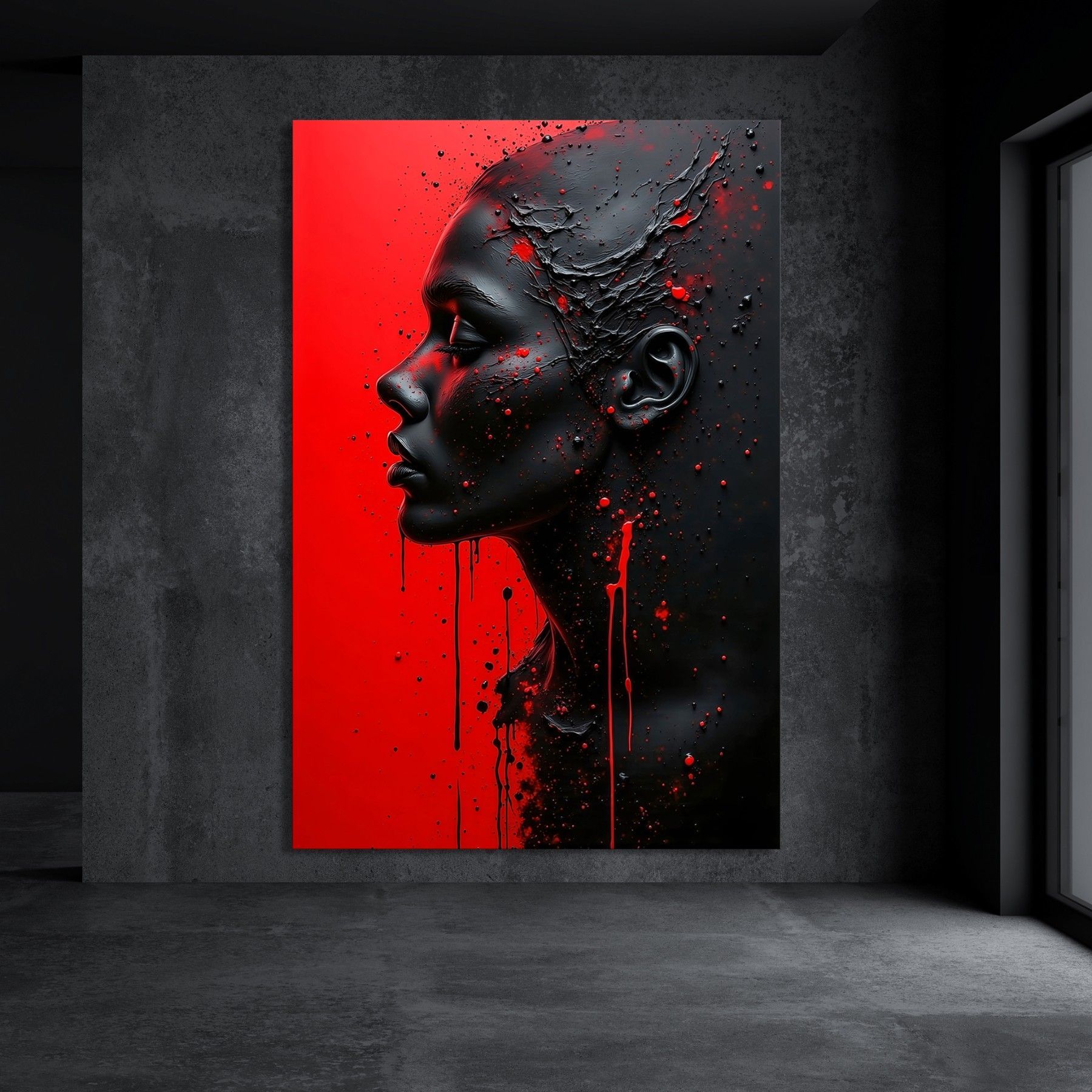 Abstrakte Frau in schwarz und rot - Wandbild Kunst Leinwand, Acrylglas, Poster