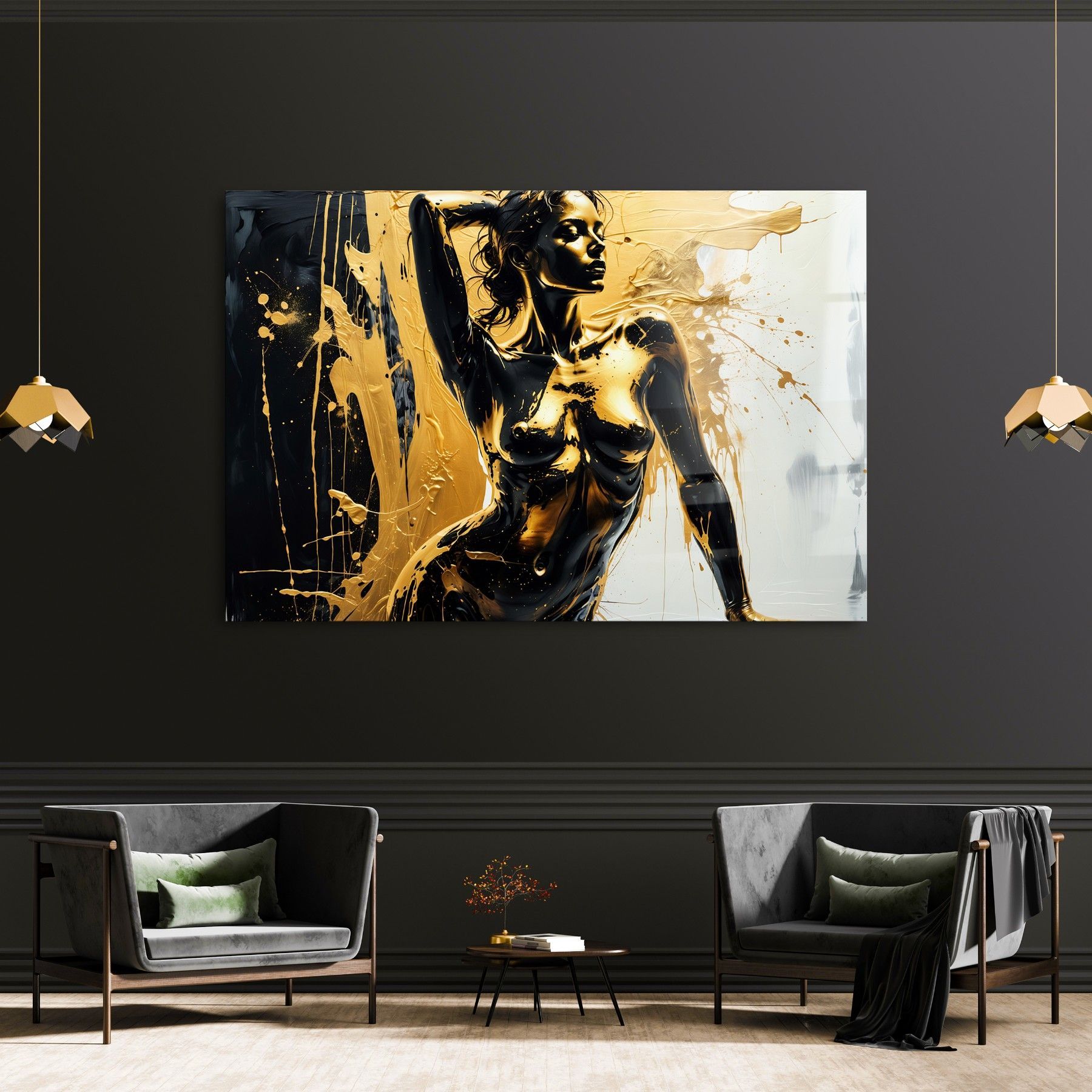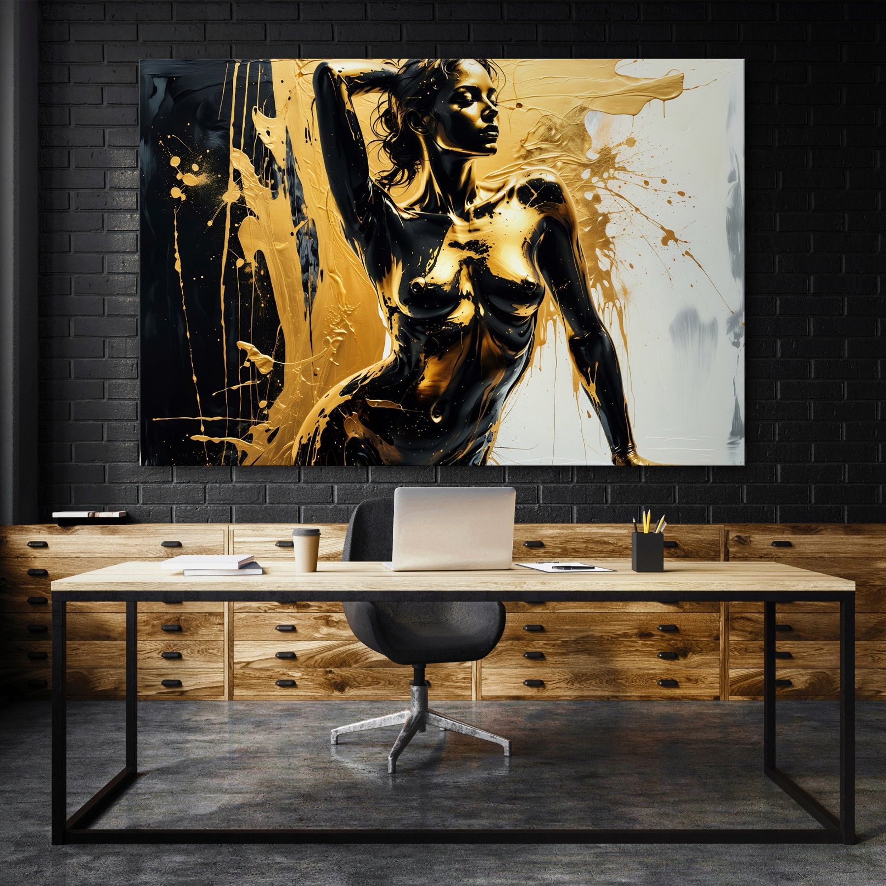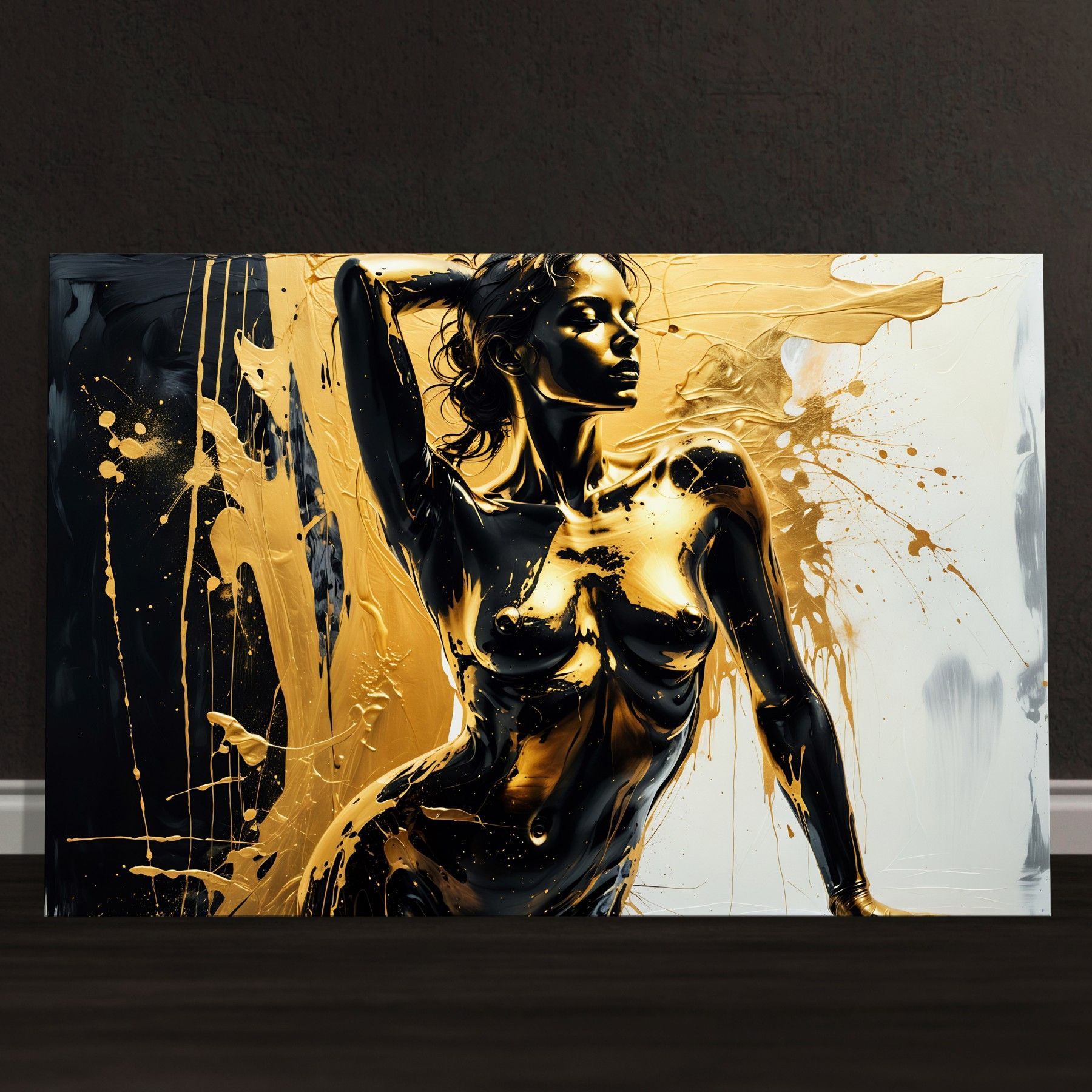 Abstrakte Gold Kunst - EROTIK FRAU, Wandbild Leinwand, Acrylglas oder Poster Deko v74