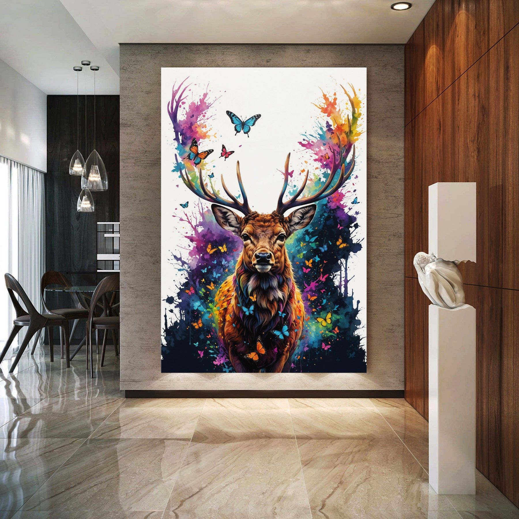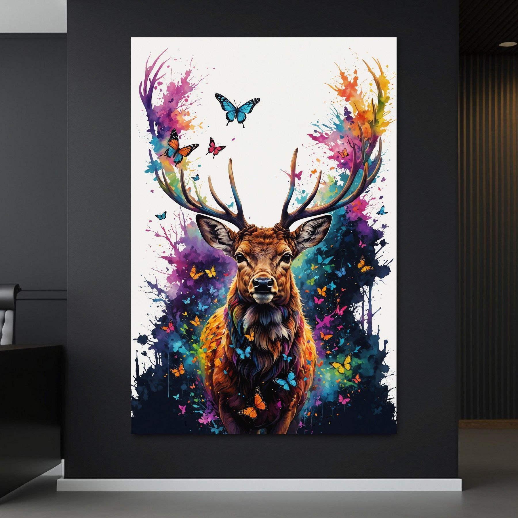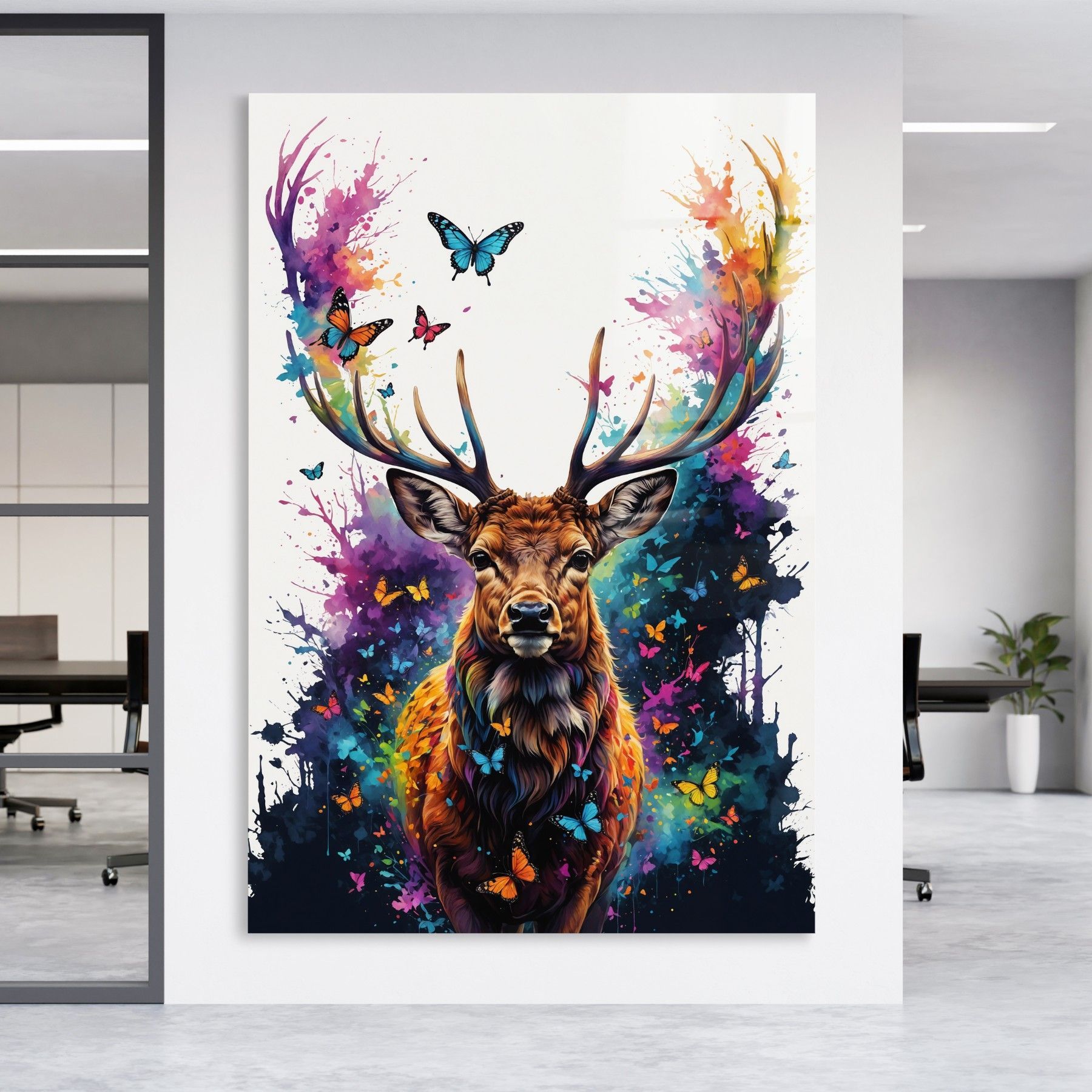 Abstrakte Hirsche in Farben Tier Kunst, Wandbild Poster, Leinwand oder Acrylglas