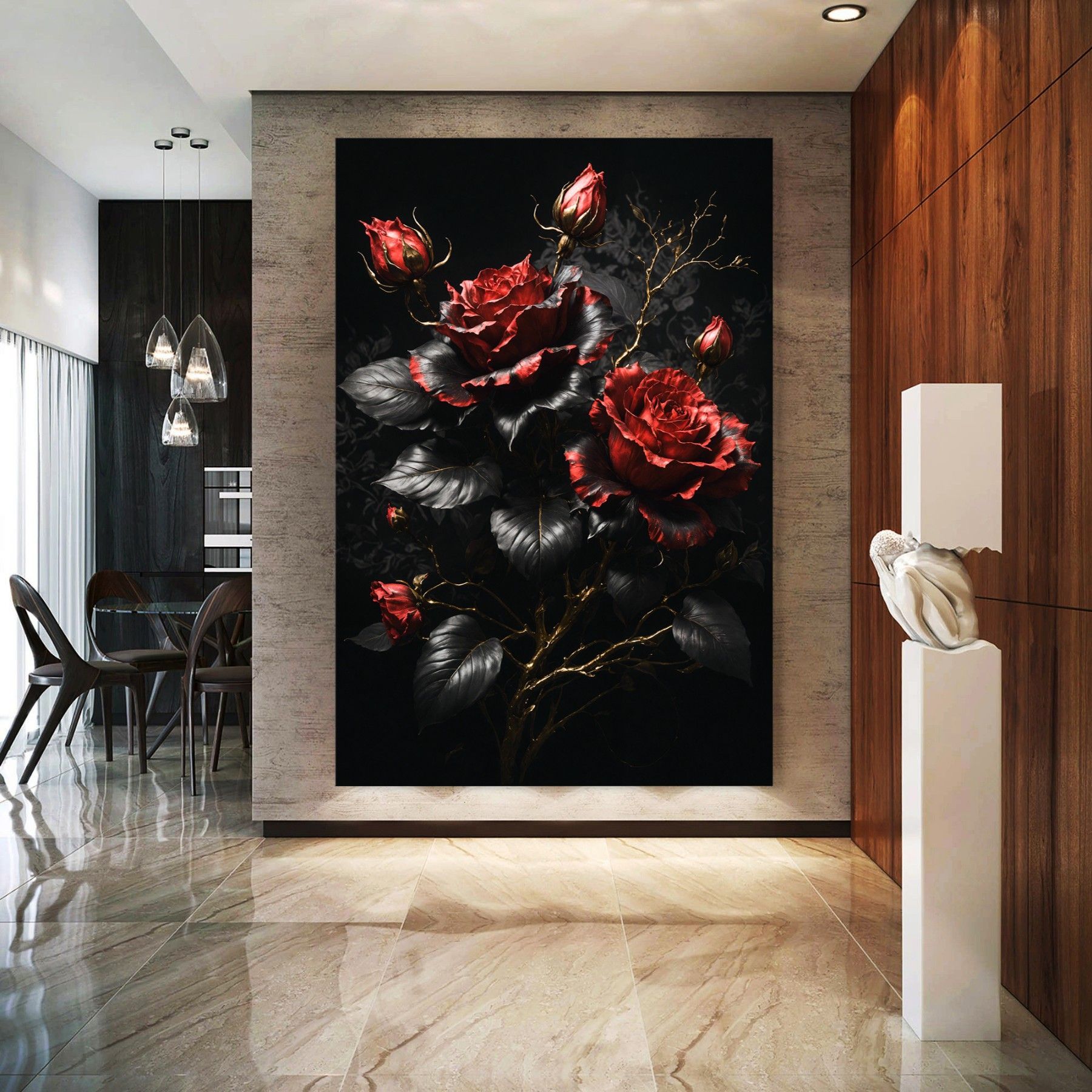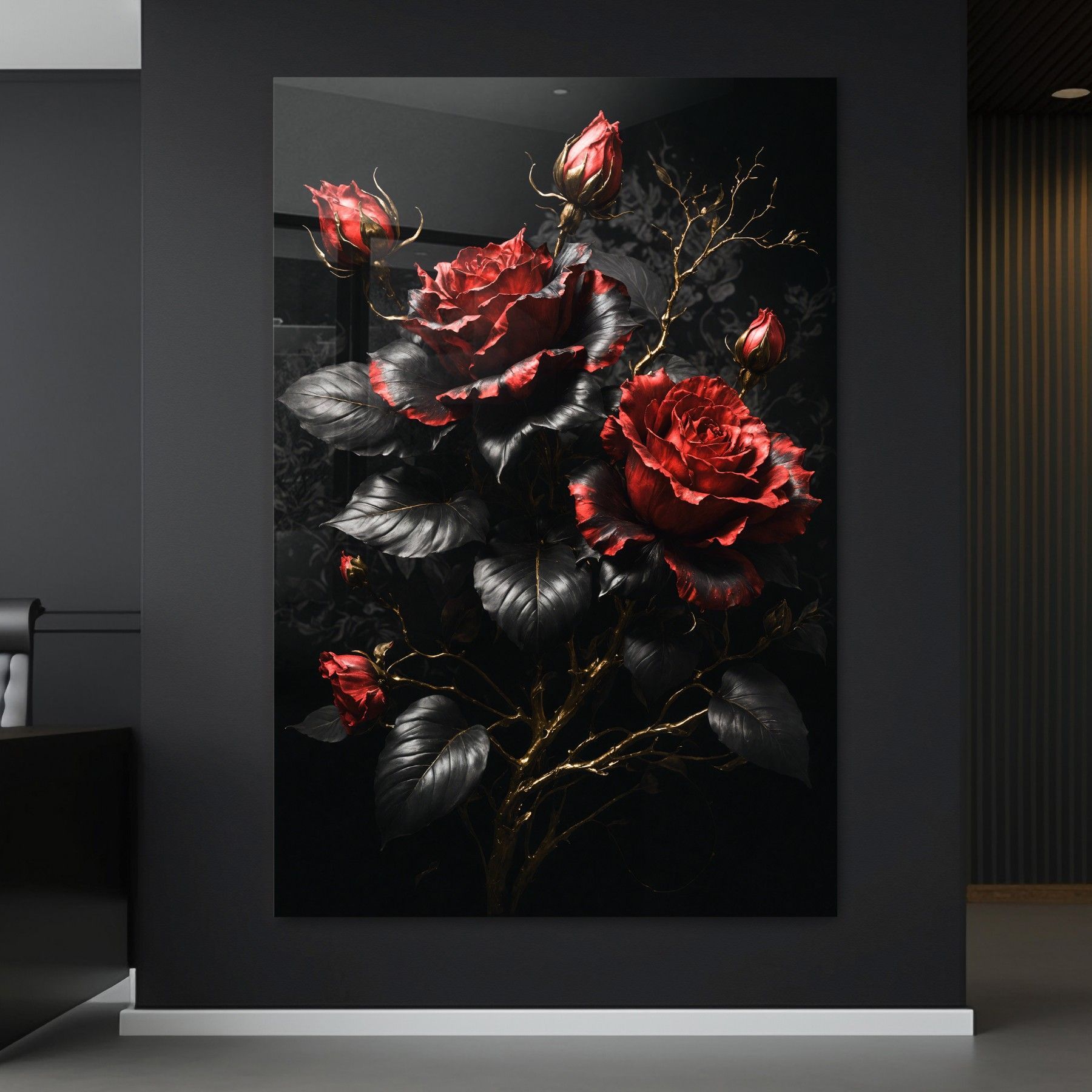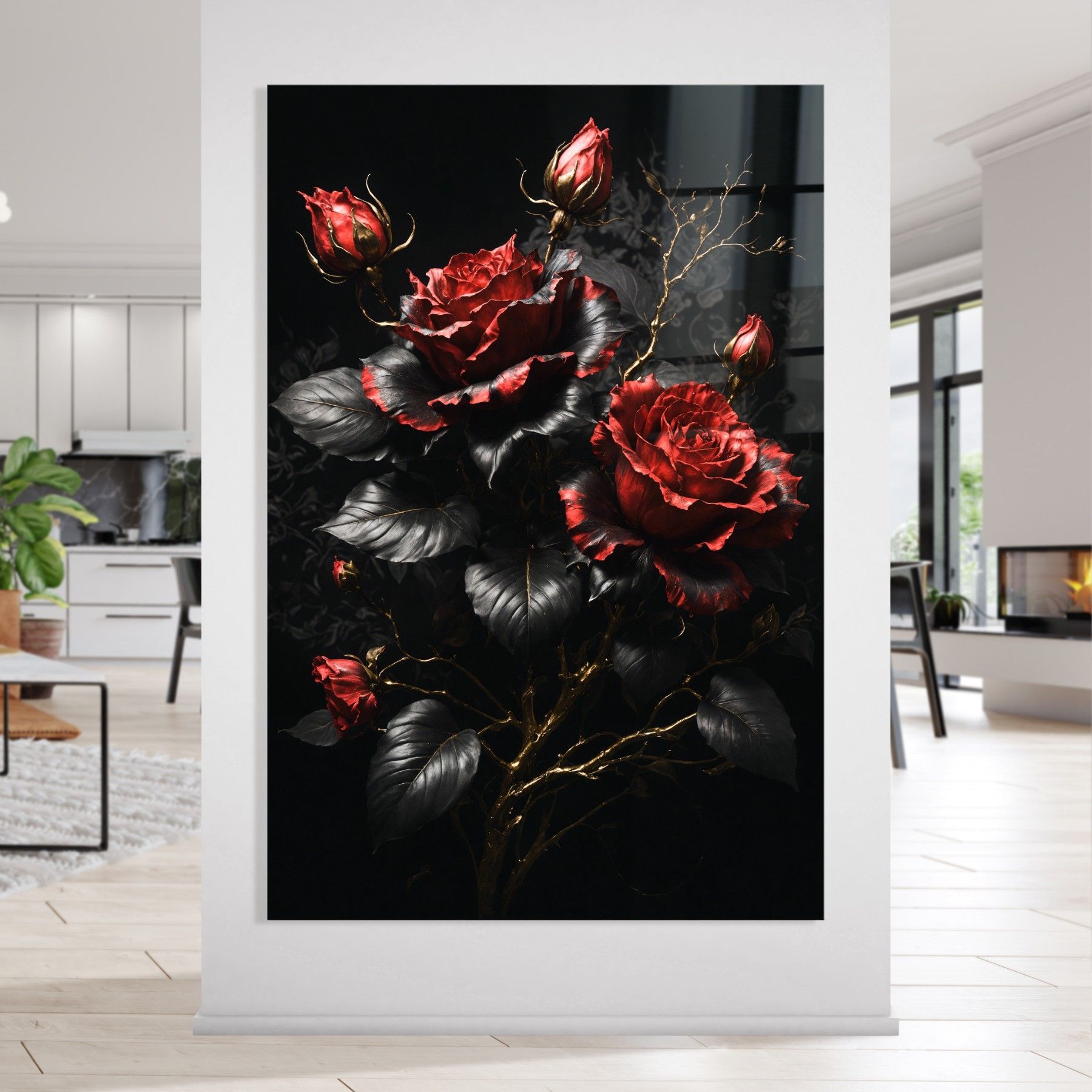 Blume Luxury Goldene Fashion Rose Leinwand , Acrylglas + Aluminium , Poster Wandbild