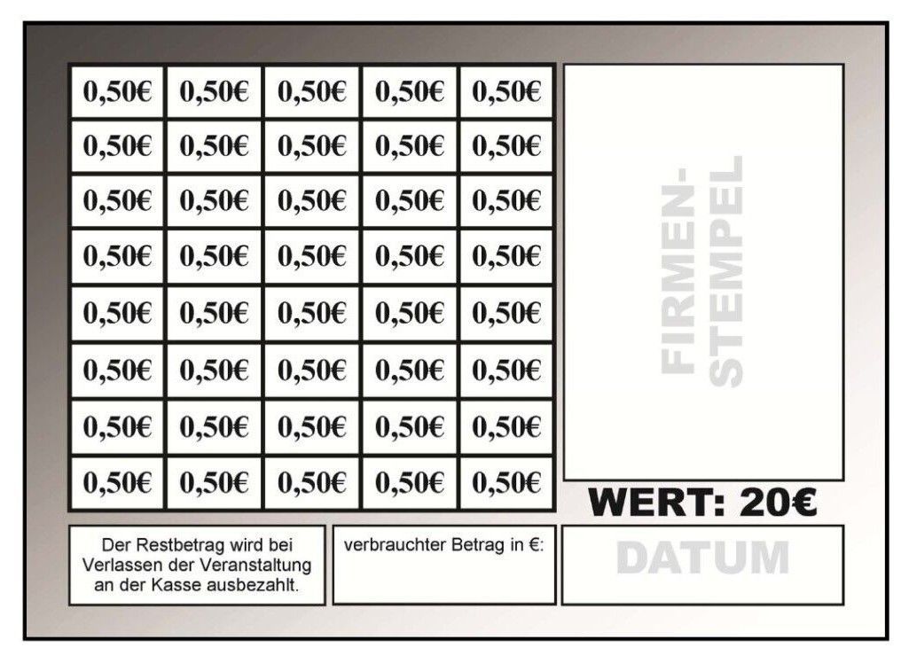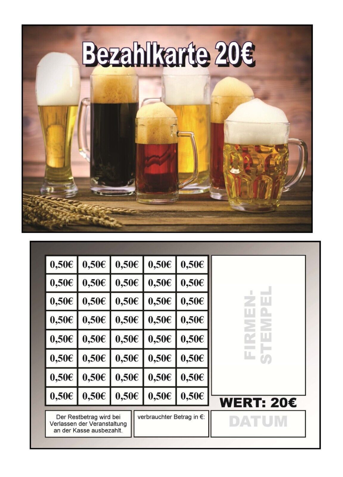Abstreichkarten Verzehrkarten Wertmarken Guthabenkarten 20 Euro Bezahlkarten Bier