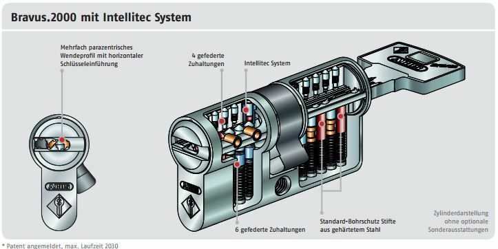 Abus ABUS Bravus2000 Profilzylinder Doppelzylinder 28/37 mm mit 3 Schlüssel und GKUP