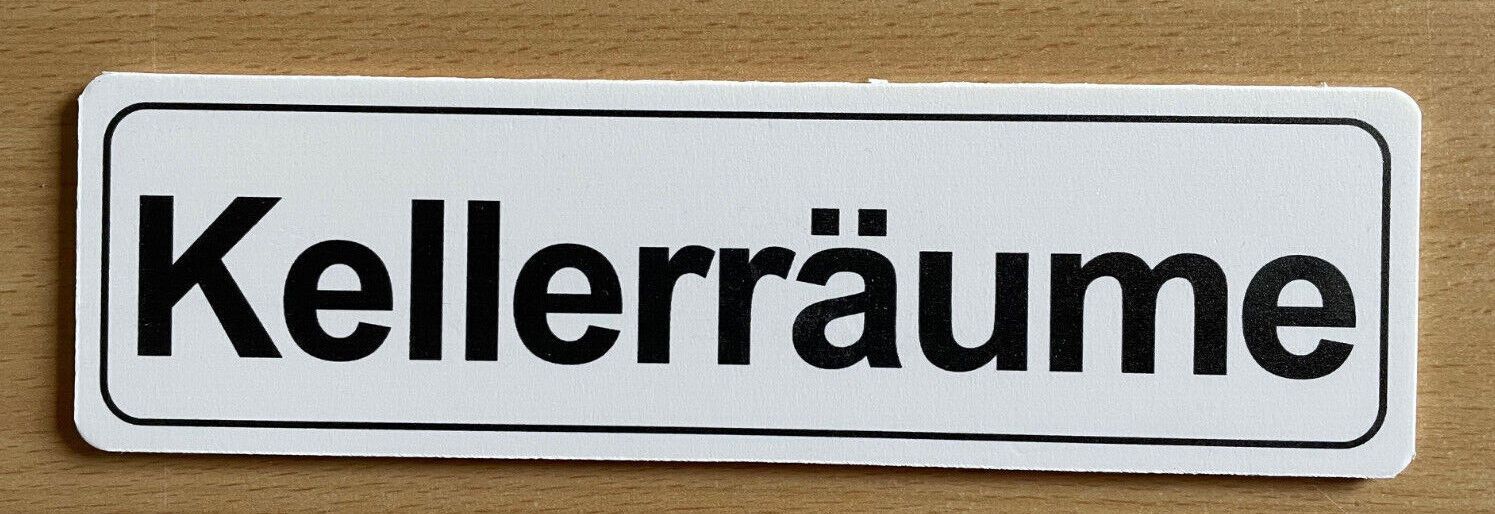 Schild: Kellerräume Größe: 6x21cm Technik: Wählen Sie oben aus zwei verschiedenen Schildern aus: Möglichkeit 1: hochwertiger Digitaldruck auf Selbstklebefolie Druck mit UV-Farben, lichtecht, jahrelang verwendbar. Die Klebeschilder werden laminiert und sind dann wetterfest. Diese kleben auf allen gla