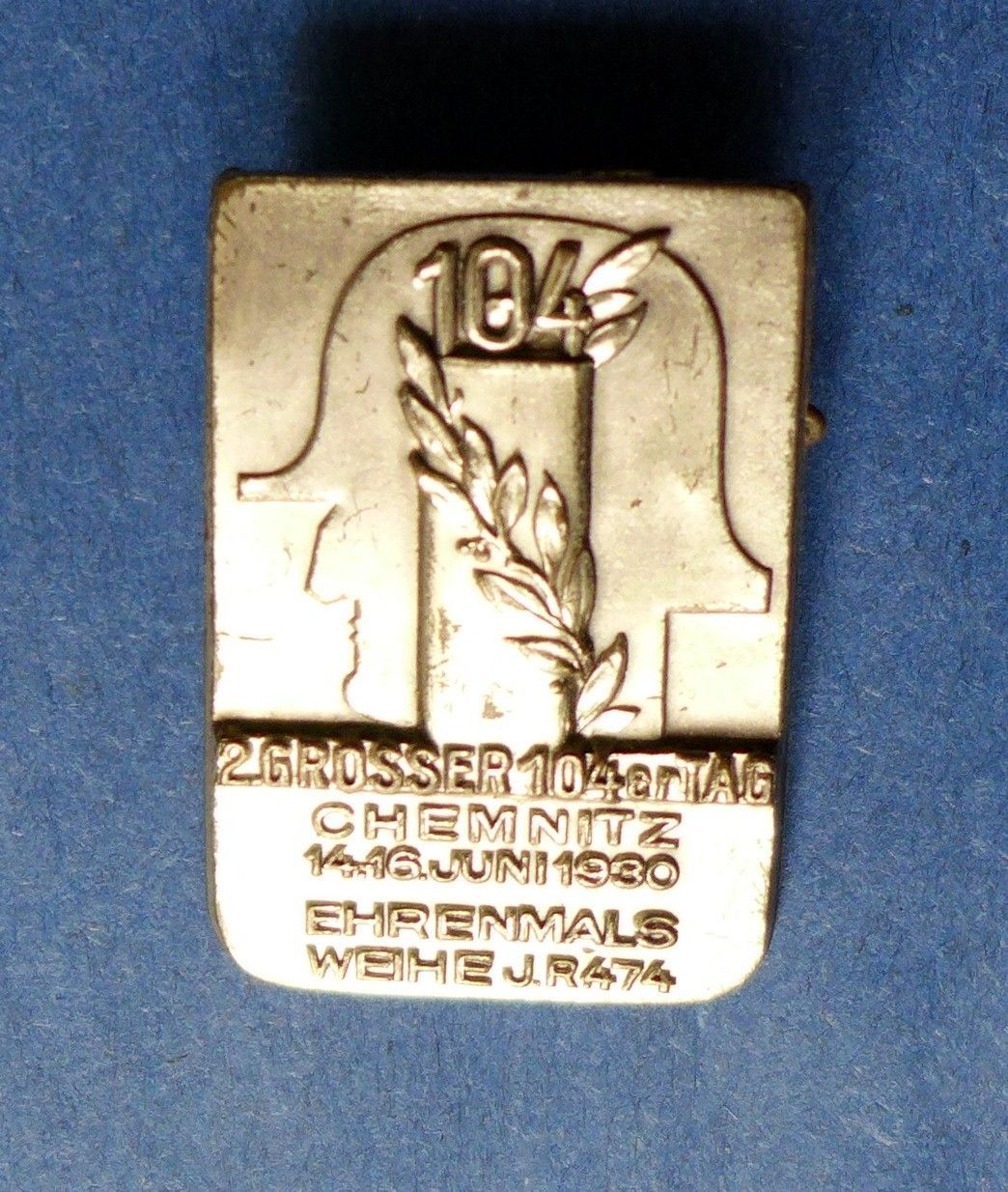 Abzeichen 2. Grosser 104er Tag Chemnitz 1930 Ehrenmals Weihe I.R. 474 Sachsen