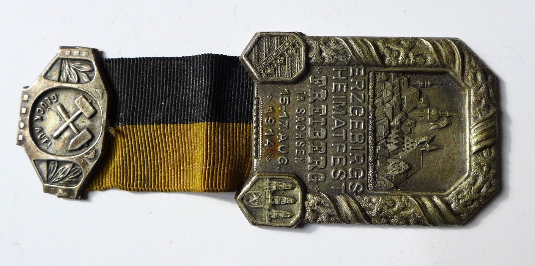 Abzeichen Erzgebirgs Heimatfest Freiberg in Sachsen 1914 Glück Auf