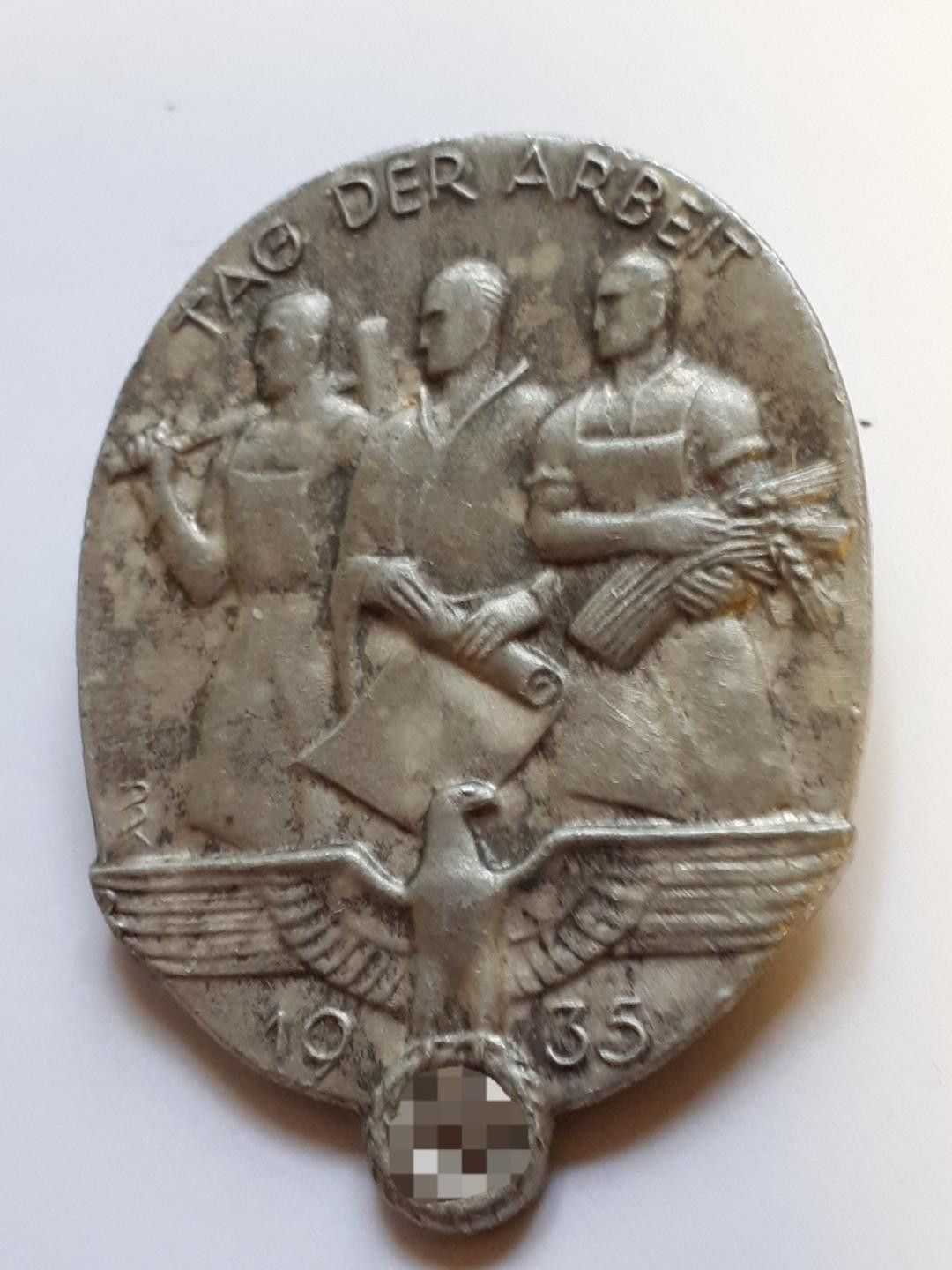 Abzeichen Tag der Arbeit 1935 * Punze PSL, Paul Schulze und Co. - Lübeck Zustand: gut - gebraucht mit kleinen Gebrauchsspuren