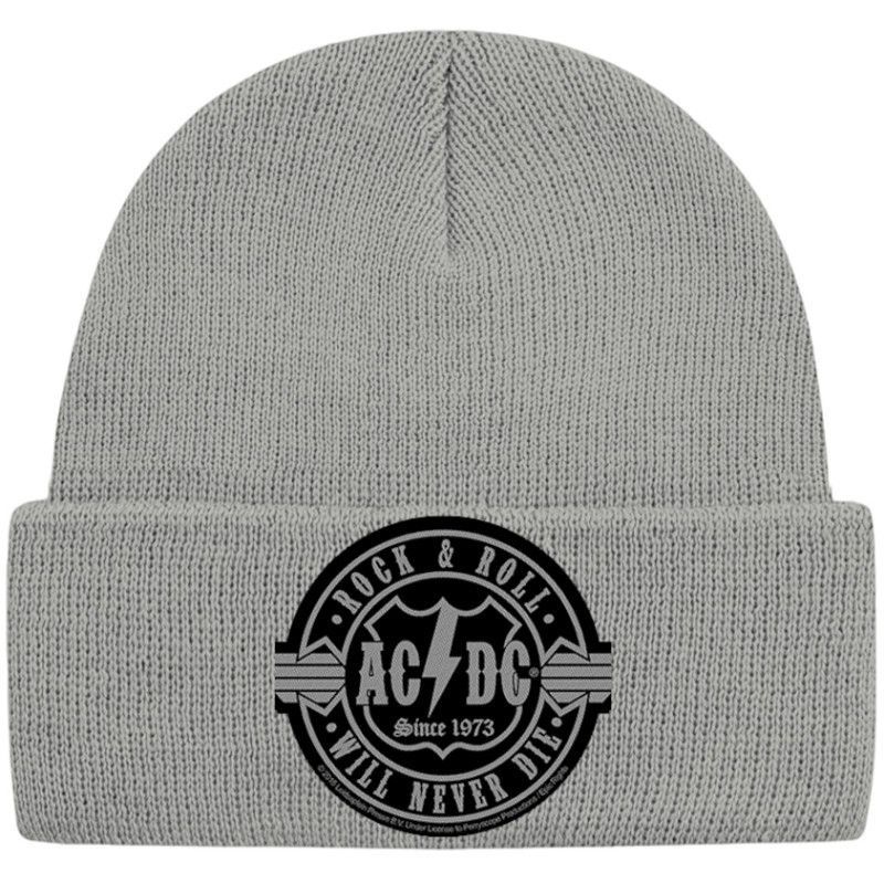 AC/ DC Graue Rock & Roll Never Die Mütze - ACDC Hard Rock Beanies Mützen Caps Hats